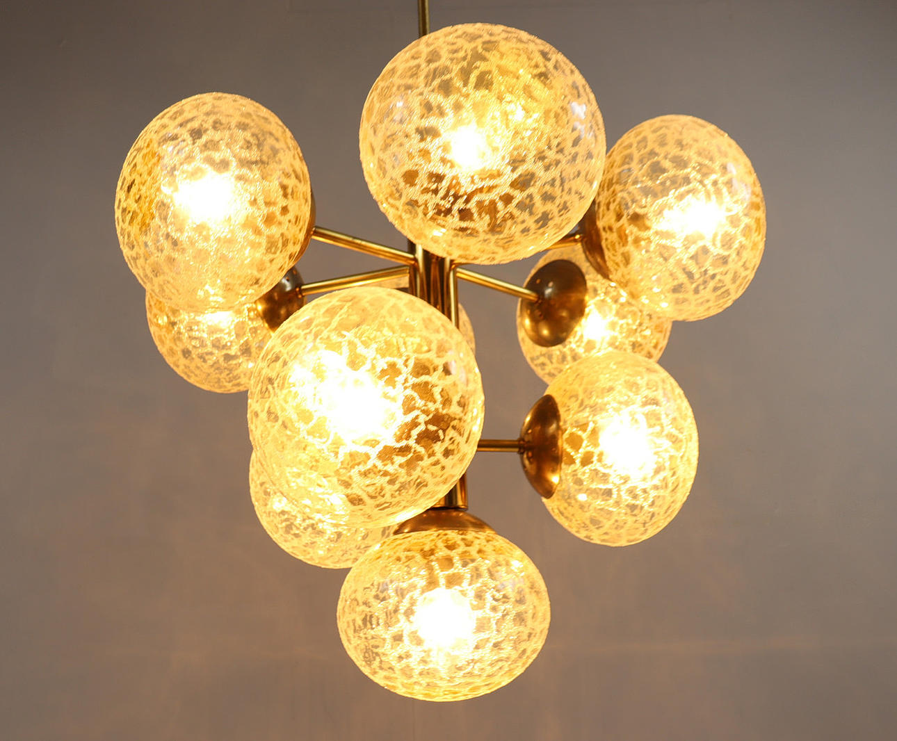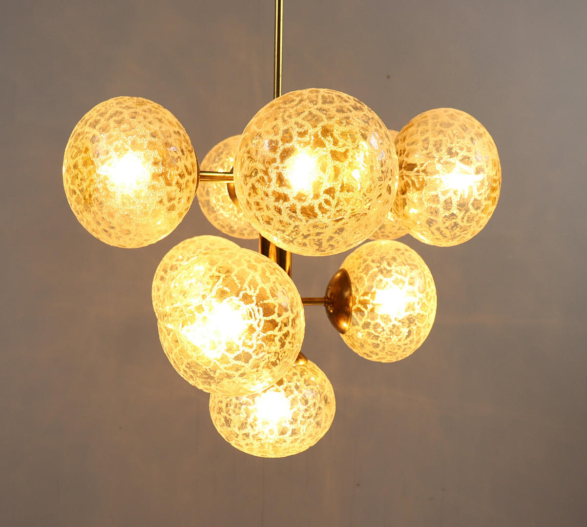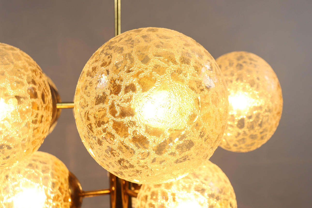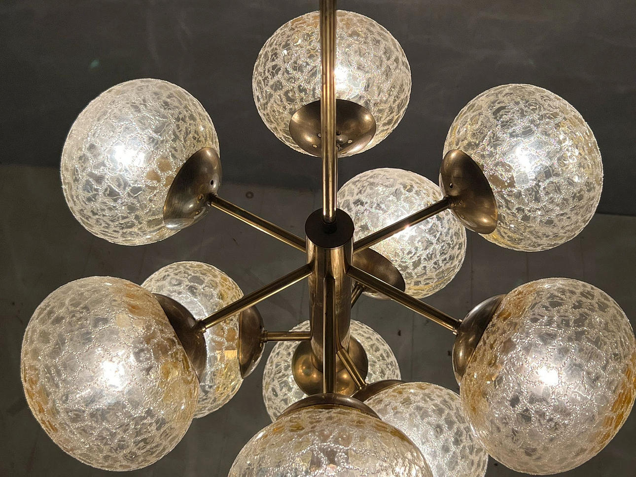 Space Age Sputnik hanging lamp/ceiling lamp, Germany, 1970s, construction made of golden metal and glass, 10 burning points available,