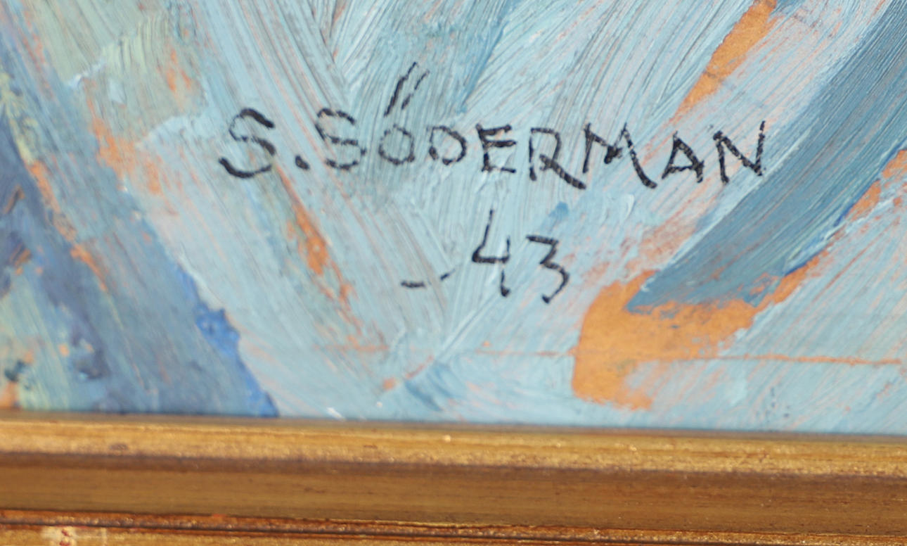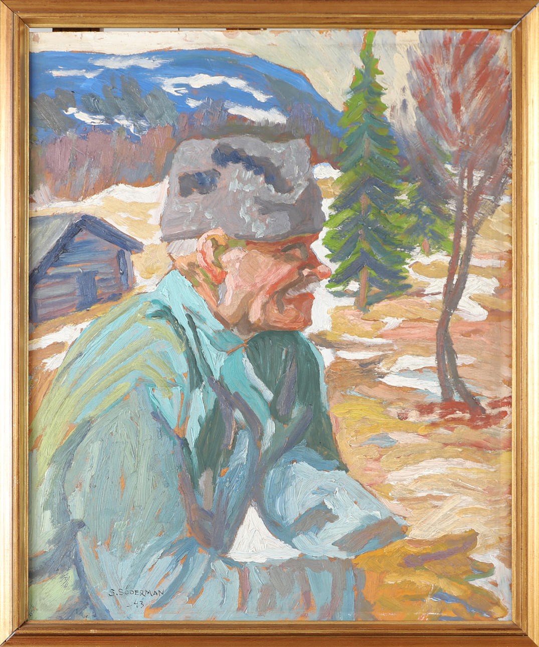 4373734. OIDENTIFIERAD KONSTNÄR. Mountain landscape with old man, oil on panel, signed S. Söderman -43.