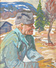OIDENTIFIERAD KONSTNÄR. Mountain landscape with old man, oil on panel, signed S. Söderman -43.