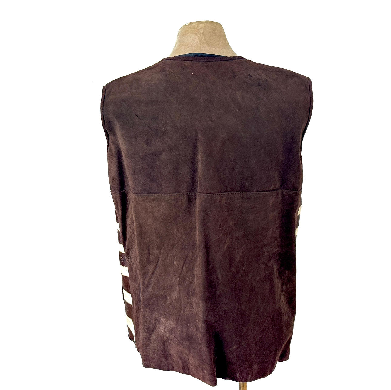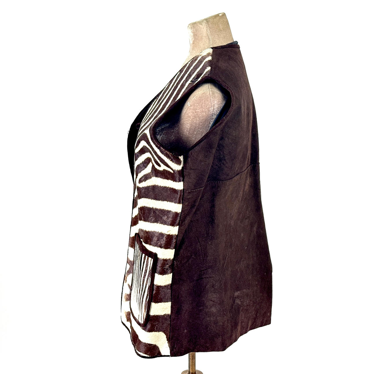A zebra skin waistcoat. Shoulders: 42cm. Pits: 54cm. length: 70cm.