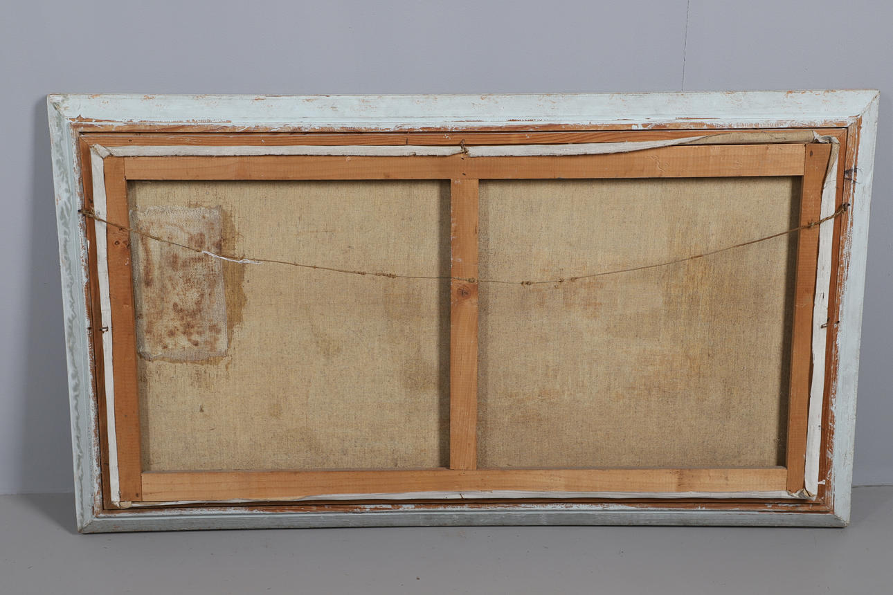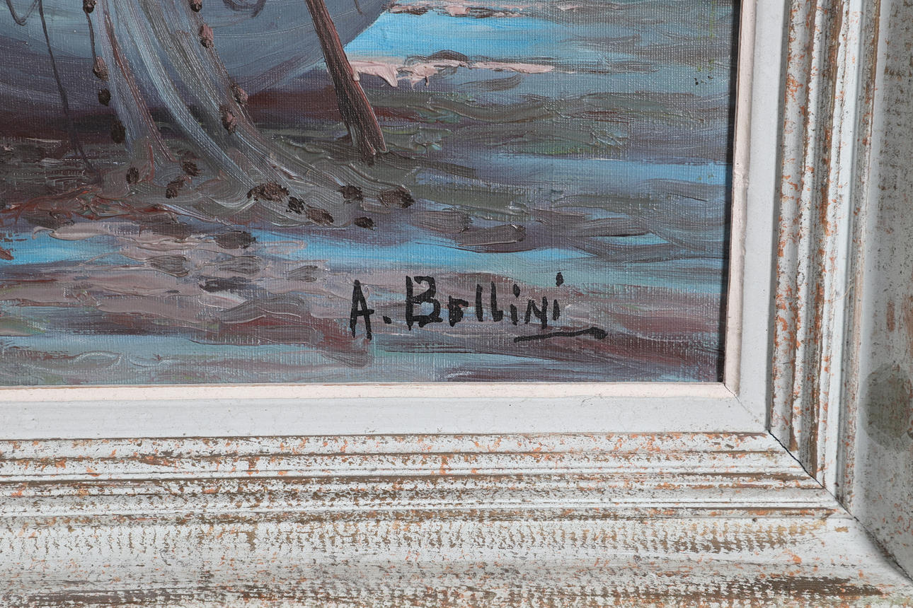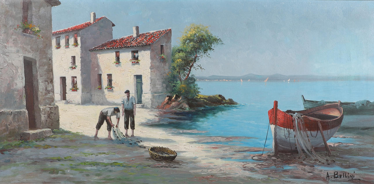 Italian fishing village scene, oil on canvas, signed, 100 x 50 cm.