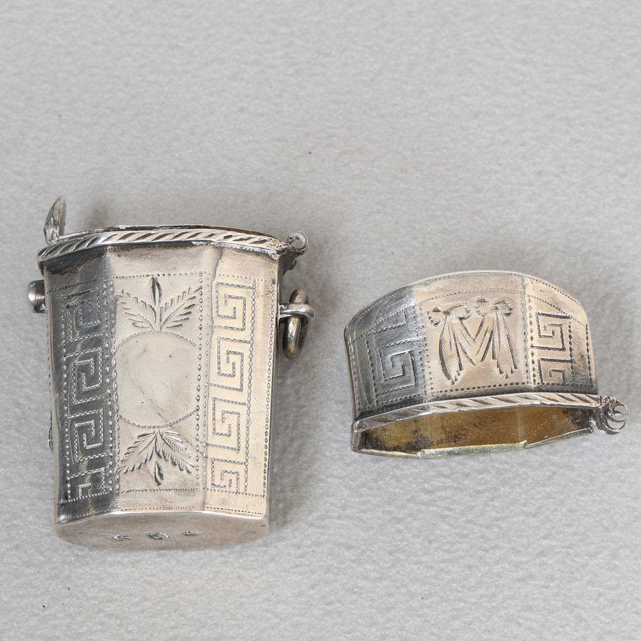 Maker IT, of octagonal tapering form, the hinged lid opening to reveal a pierced removable grille, 4.5cm high, 0.49oz.