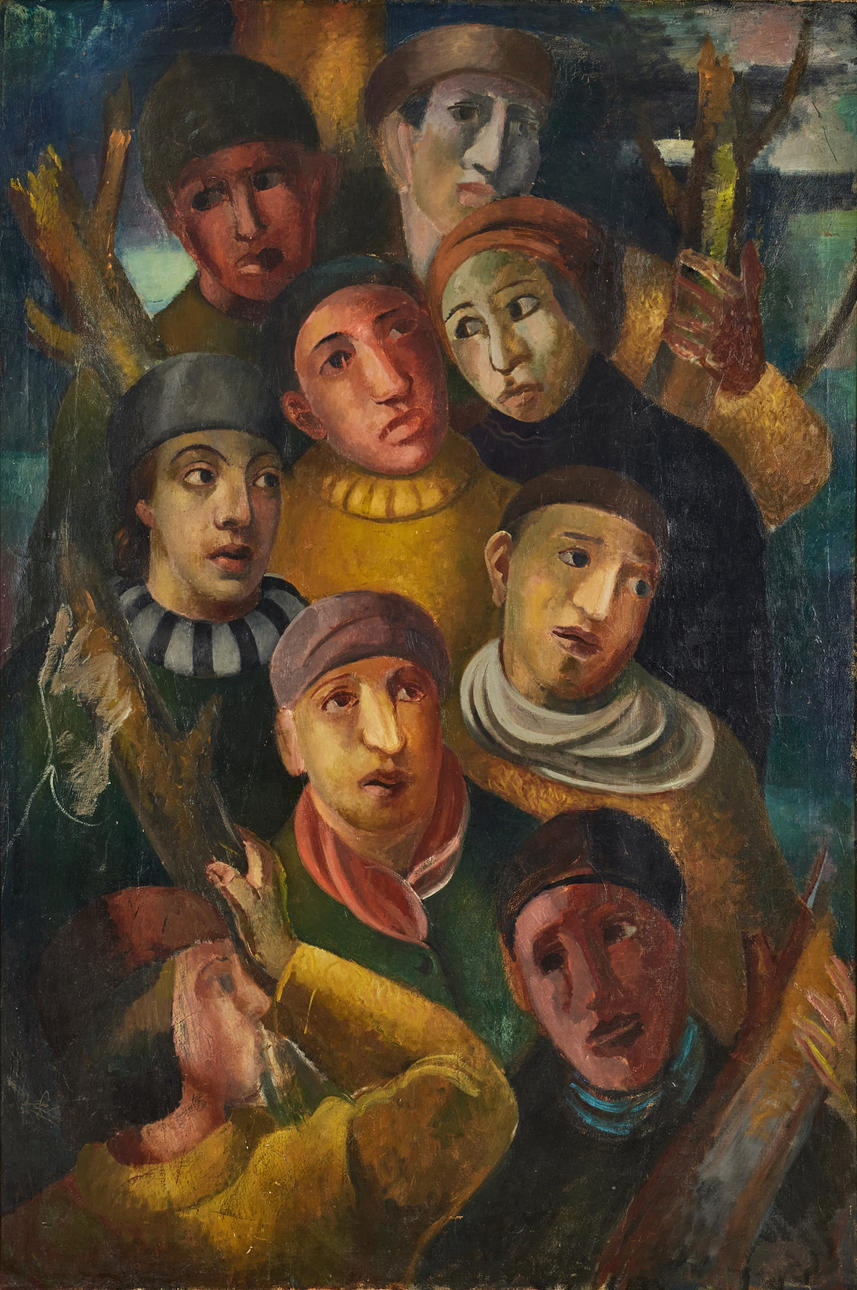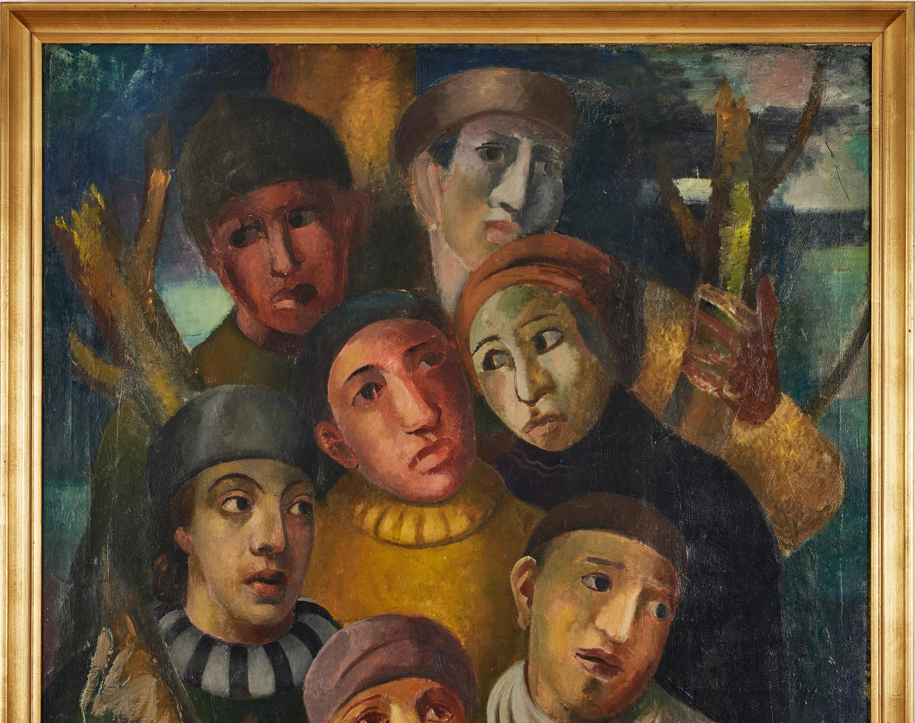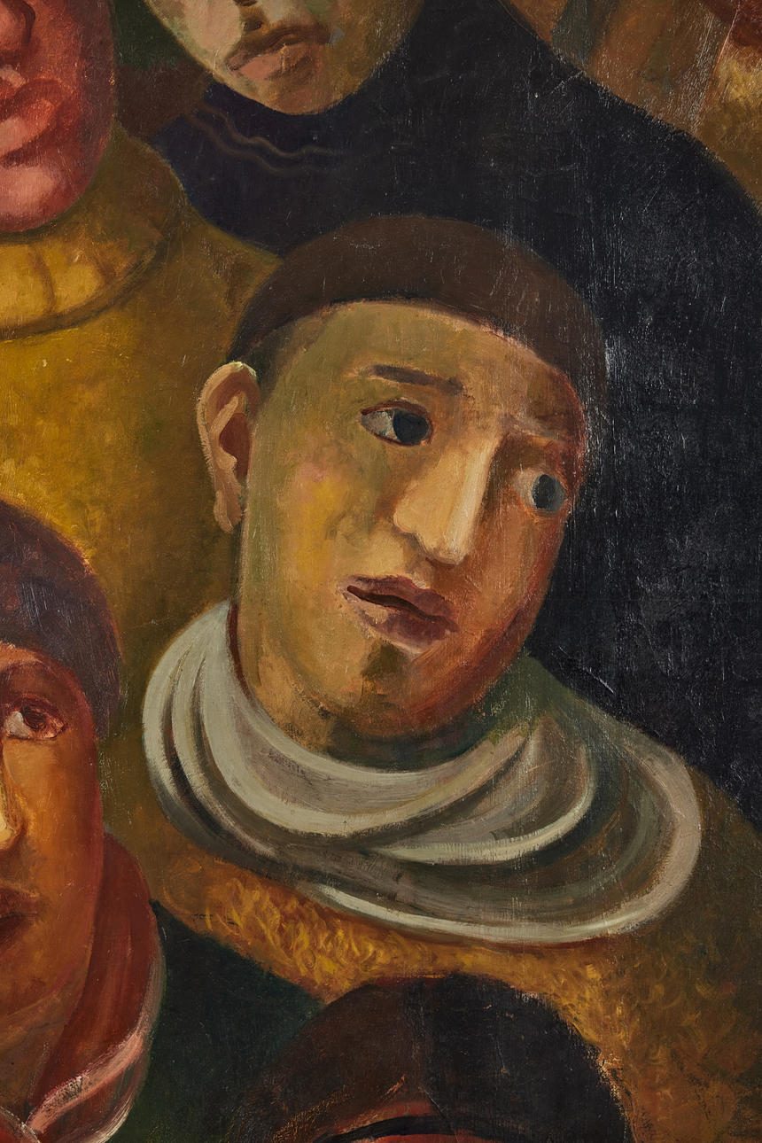Slight paint loss, marks from pins in the upper edge of the canvas, surface dirt.
