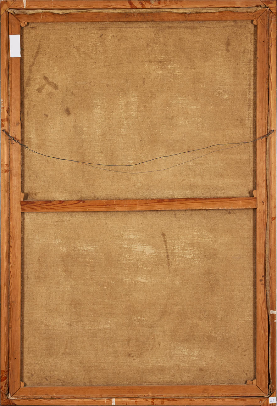 Oil on canvas, 150 x 100 cm, including frame 157 x 107 cm. It's unsigned.
