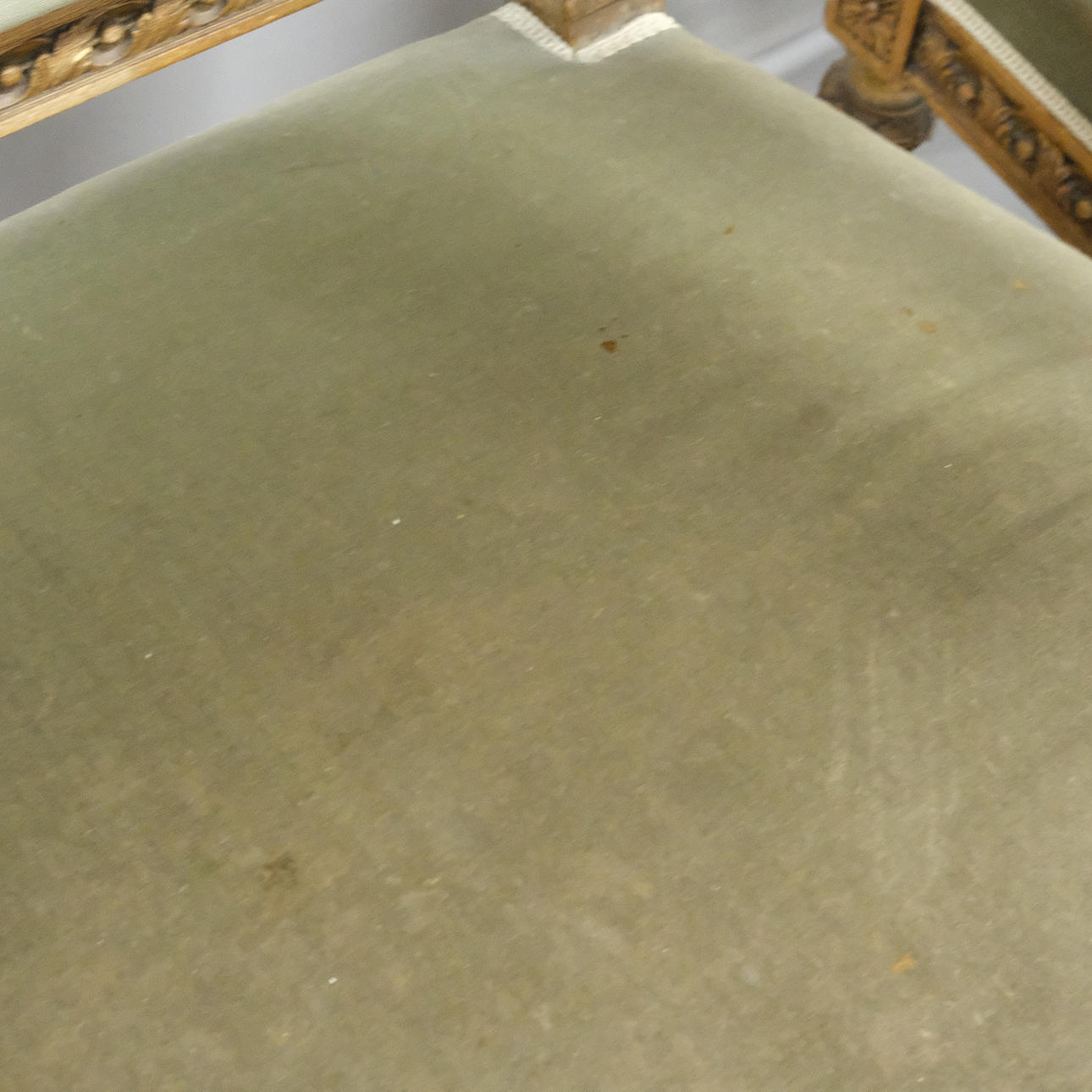 Normal wear and tear, patina, stains on the upholstery, marks, paint splashes.