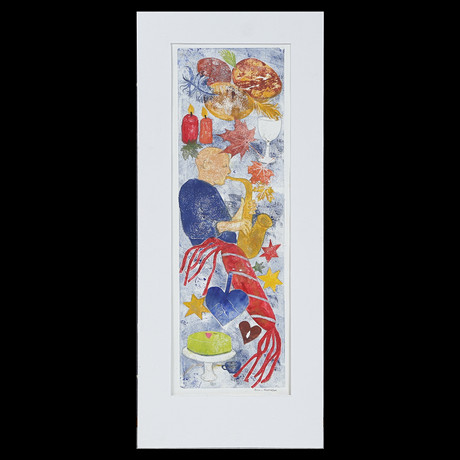PETER DAHL. Colour lithograph, saxophonist playing, signed and numbered 40/40.