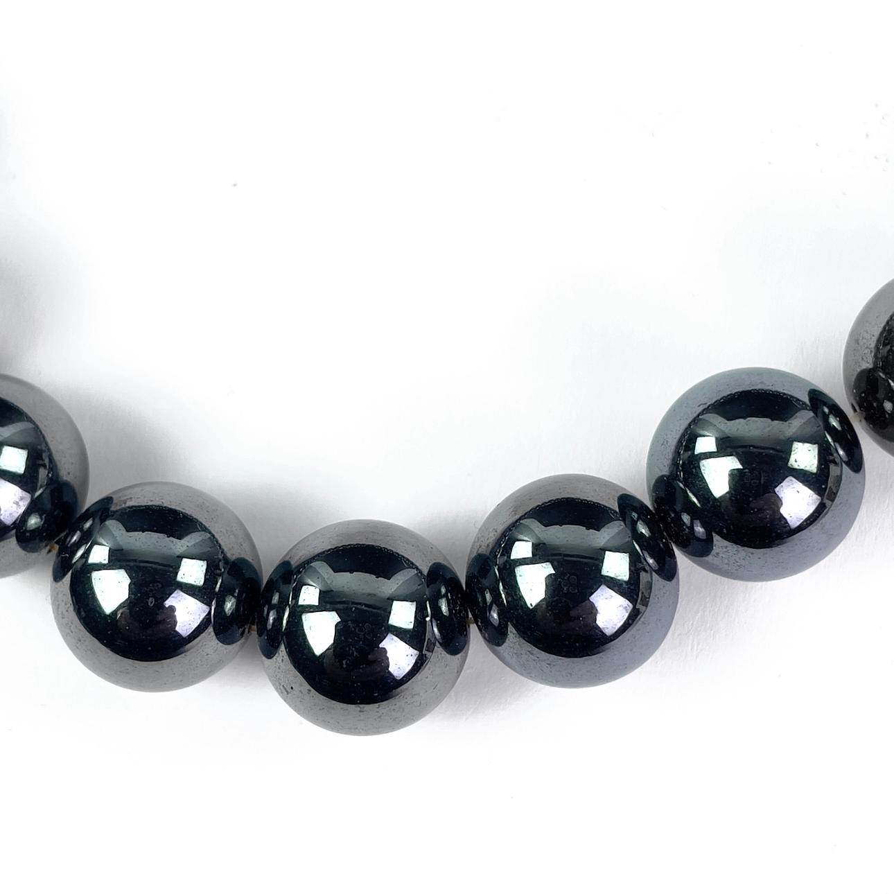Necklace, beads of hematite, screw clasp. Length approx. 42 cm.