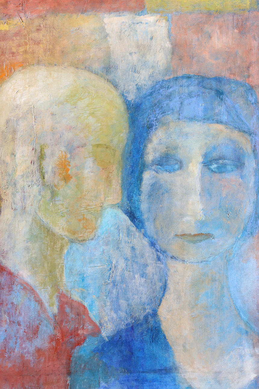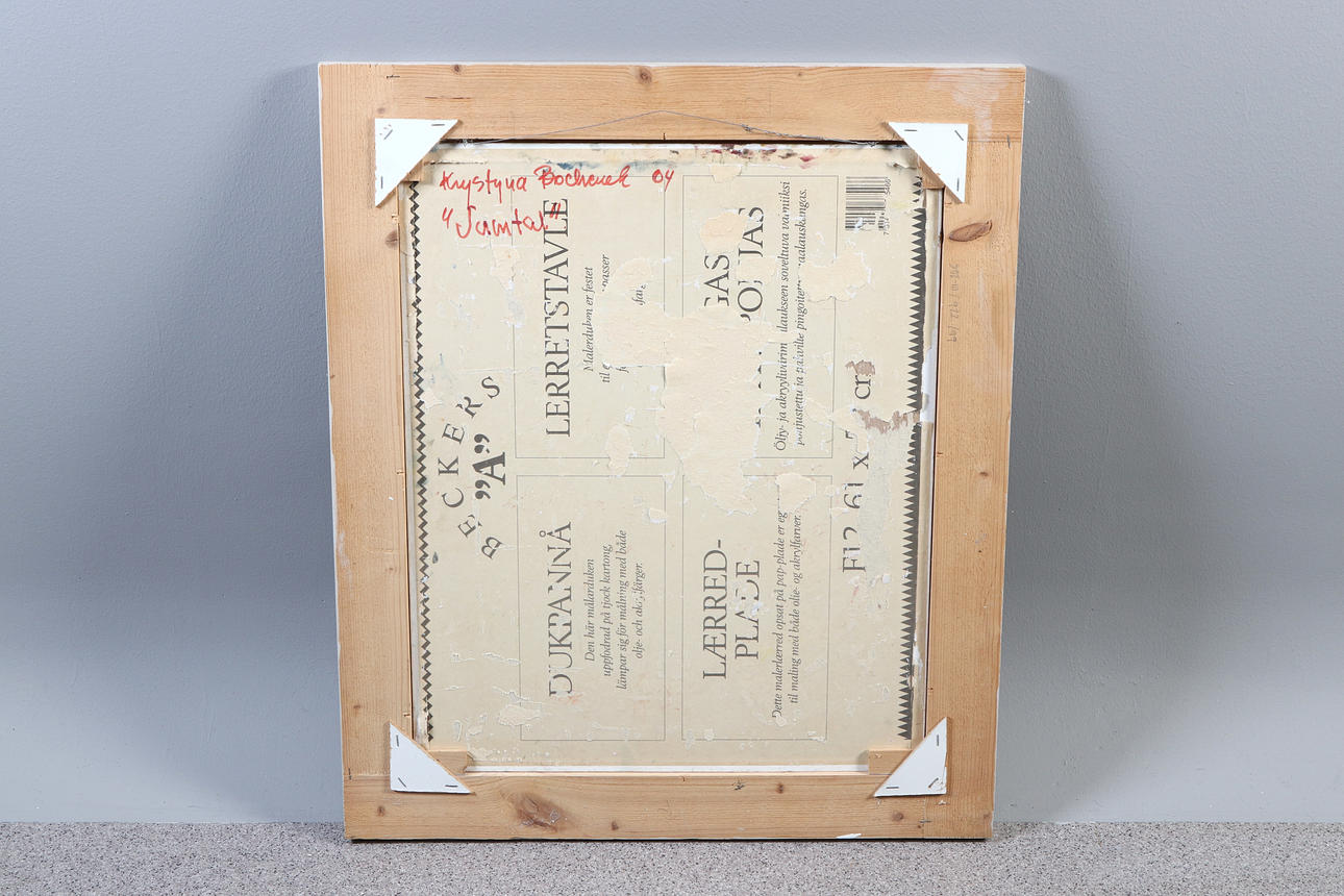KRYSTYNA BOCHENEK. Acrylic on canvas panel. “Conversation”. Signed.
