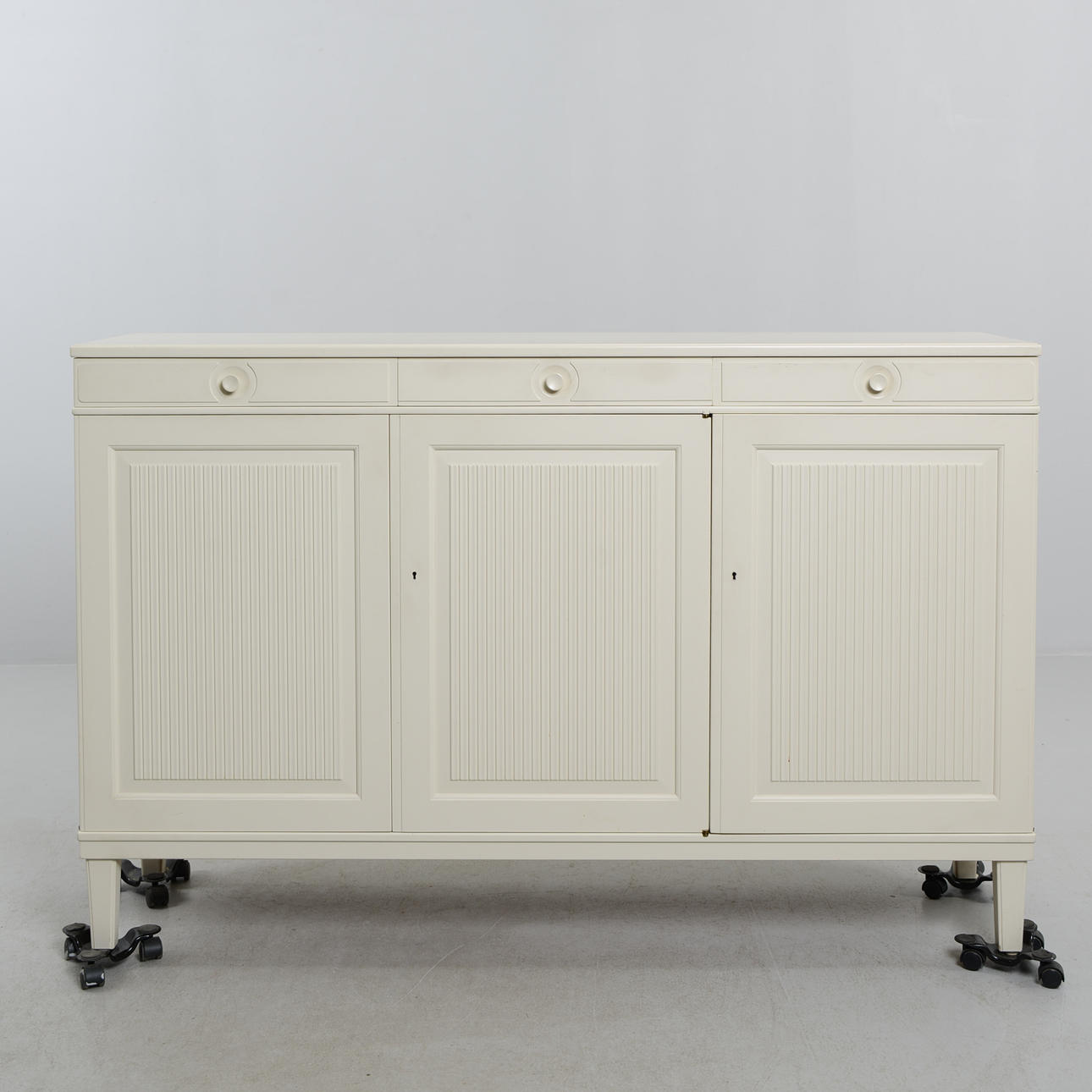3 drawers, 3 doors with rear shelves. Branded. Length 150 cm. Depth 39 cm. Height 96 cm.