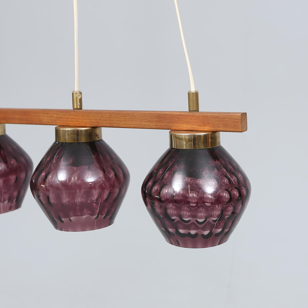 CEILING LAMP, 3 light points, purple glass, 60/70 numbers.