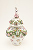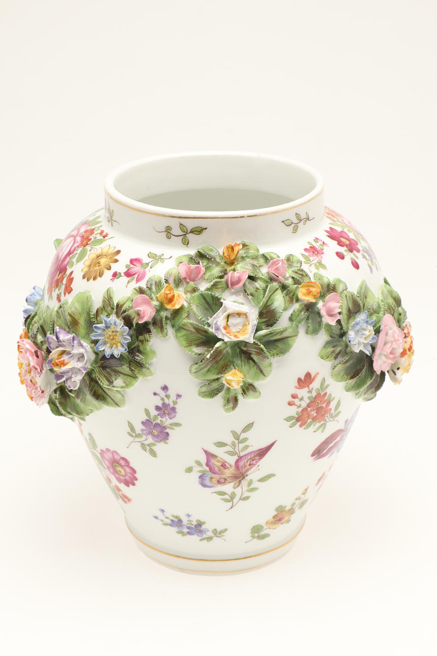 Jars, one with various chips to the flowers and leaves, small chips to the footrim. The other with various chips to the footrim, some chips to the flowers and leaves.
