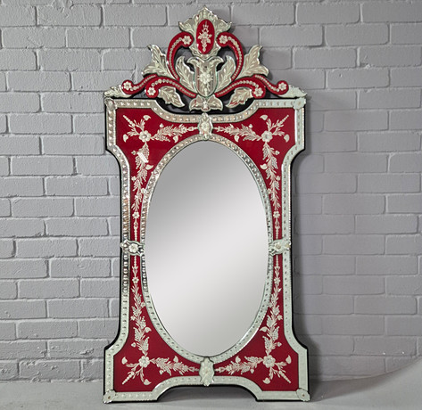 With shaped mirrored edges featuring floral decoration, Height 67cm, width 81cm.