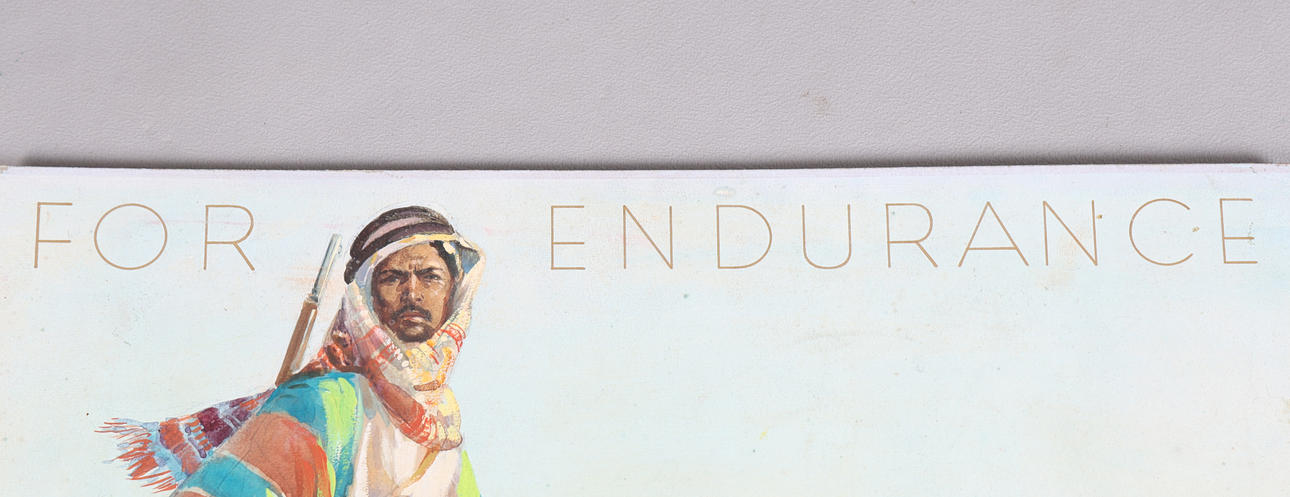 Depicting a figure on camel, 'Winner Ever Ready winner', signed Mills to bottom right, 47.5cm wide, 73.5cm high.