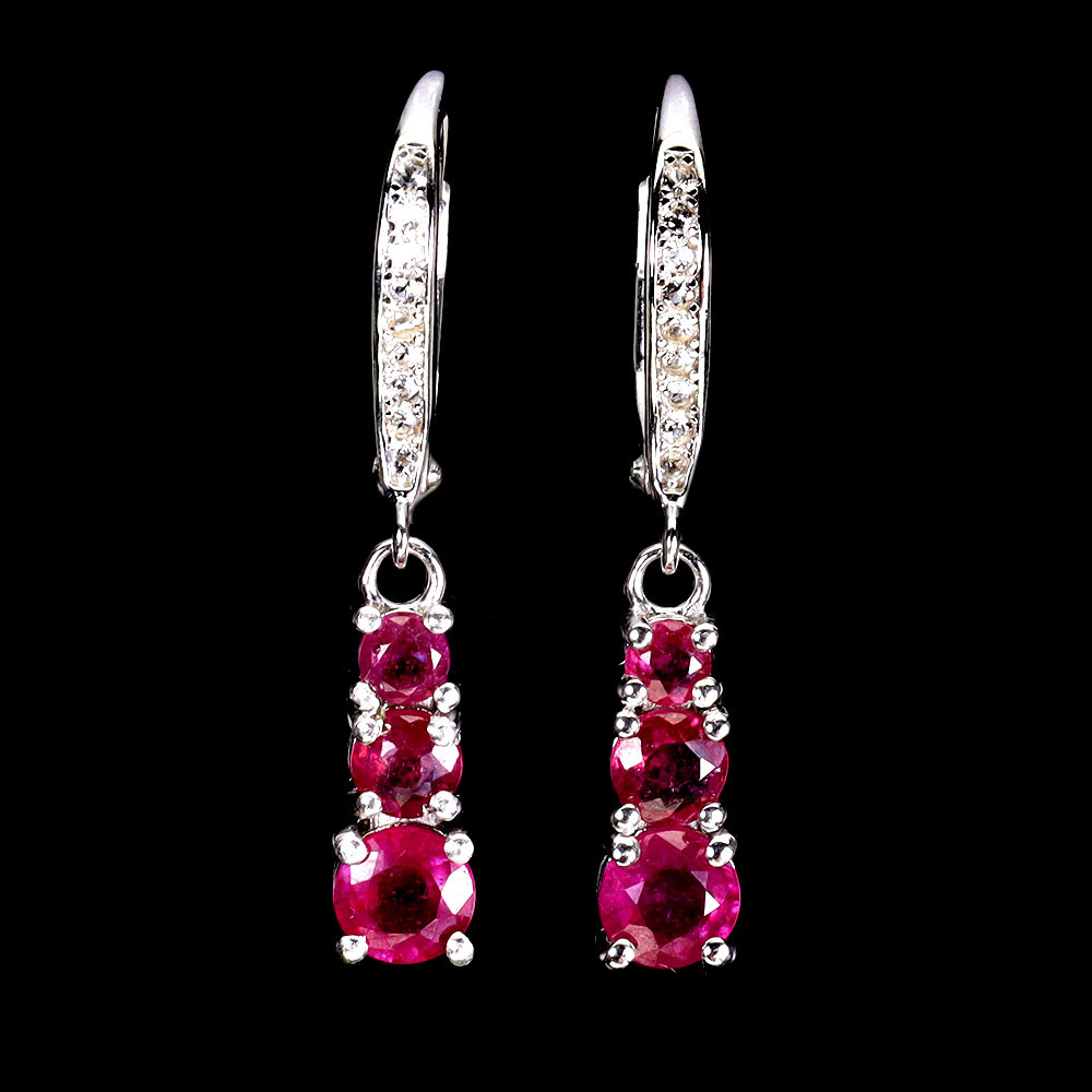 4374940. RUBY SET SILVER EARRINGS.