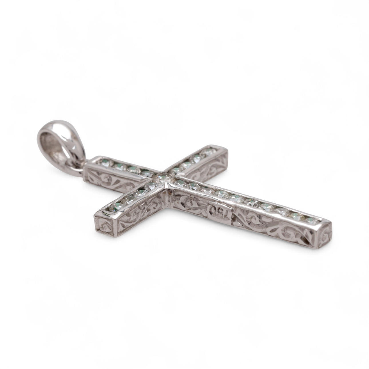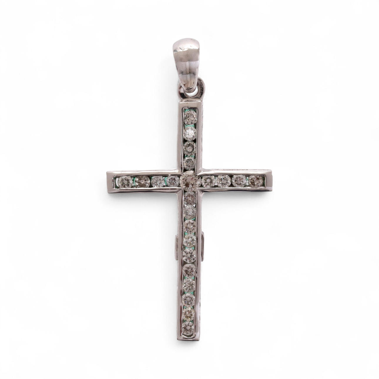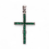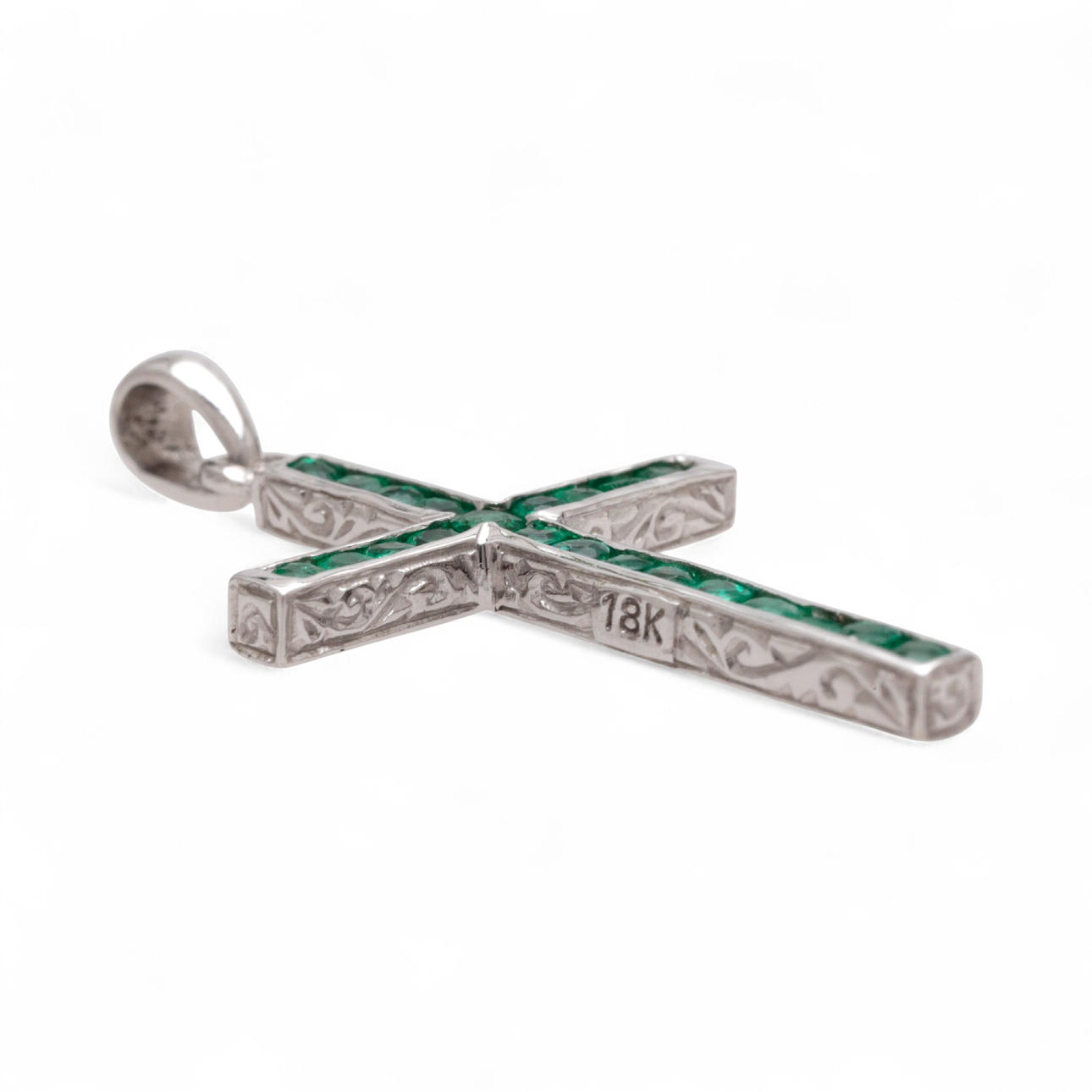 18K white gold, brilliant cut diamonds, approx. 0.25 cts., and round cut emeralds, approx. 0.20 cts. 2.8 x 1.6 cm. 1.6 gr.