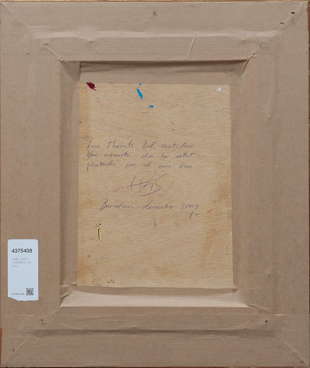 Signed. On the back, certified by the artist's son, Juan Tharrats, and dated December 2007 in Barcelona.