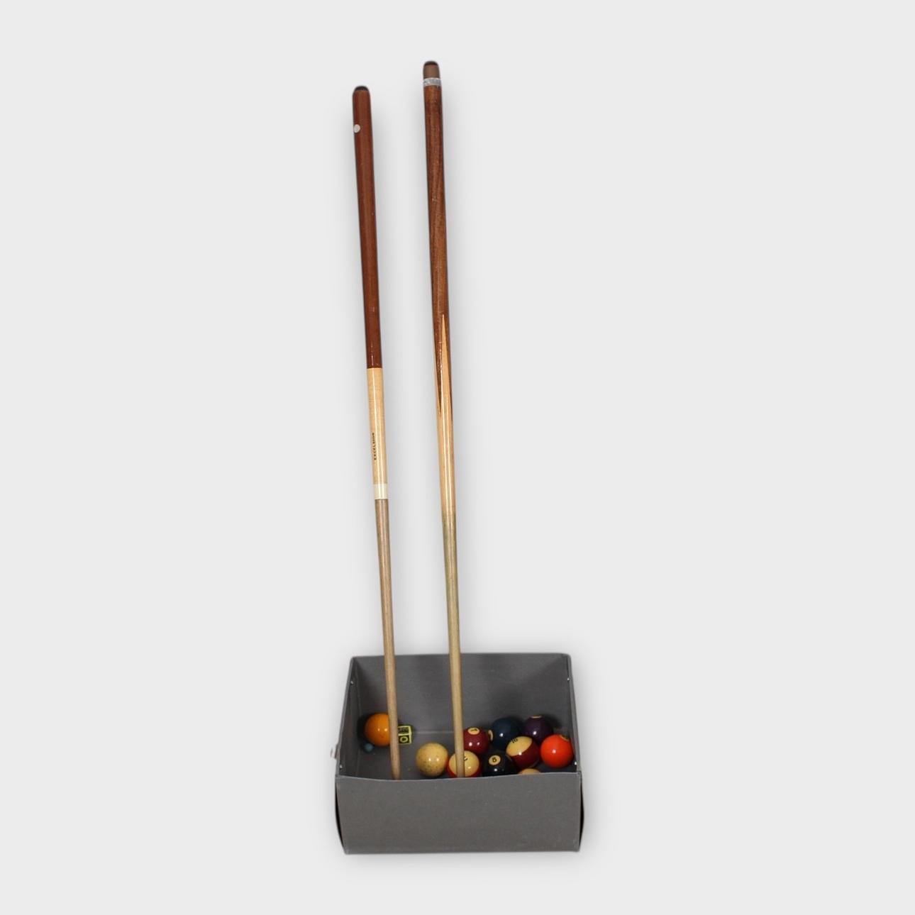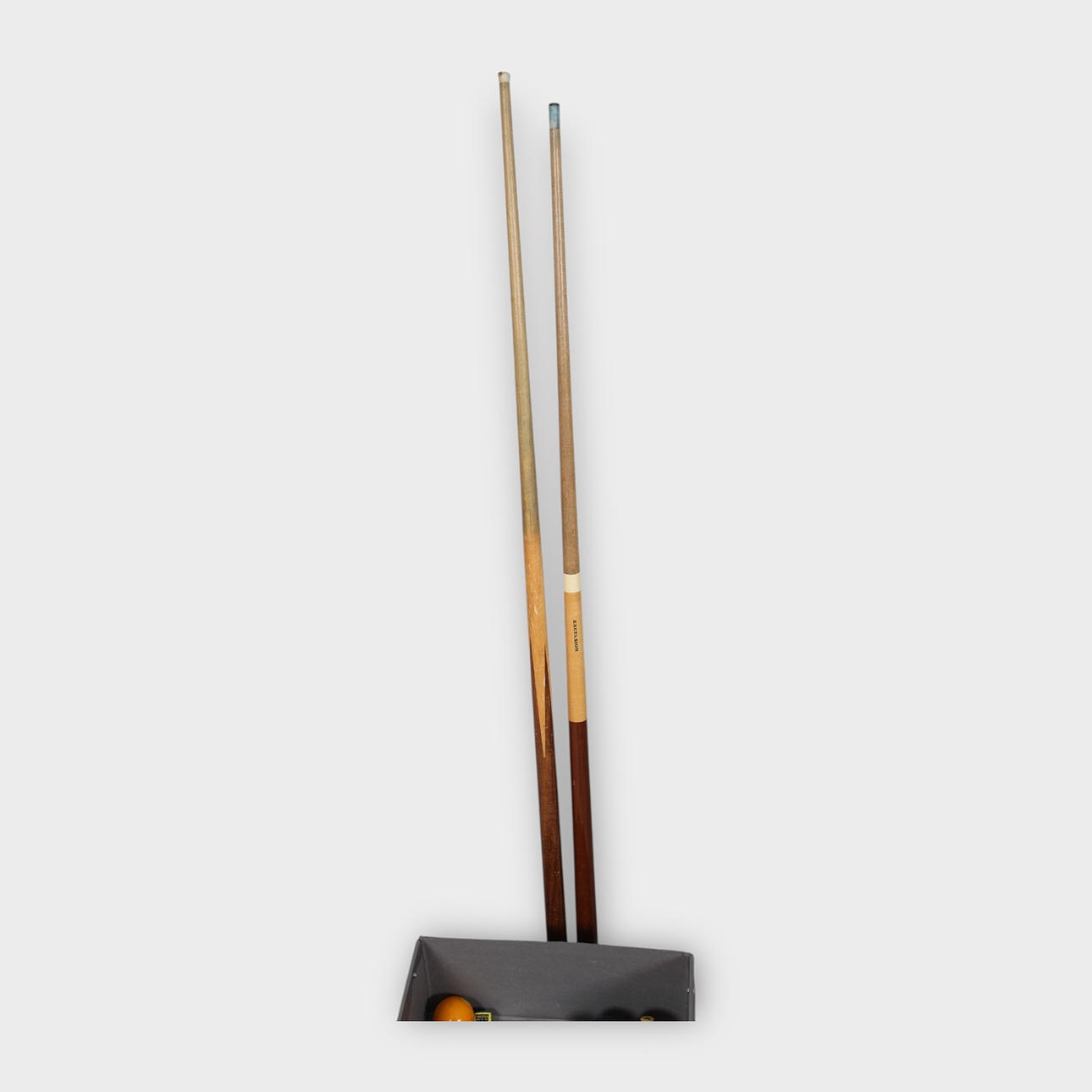 BILLIARD ACCESSORIES, partly queues and balls.
