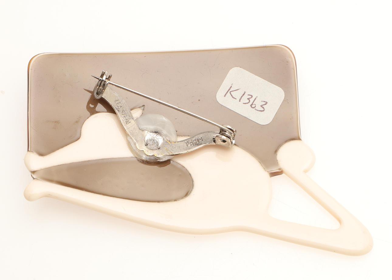 4375707. TWO LEA STEIN BROOCHES, CAT AND BALL AND FLORAL.
