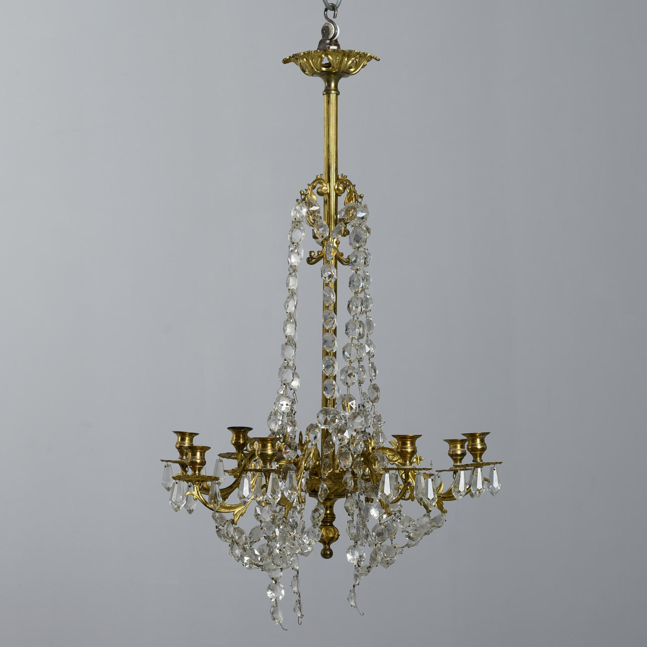 Damage to one light arm. Single prisms are missing/sitting loosely. Loose prisms included.