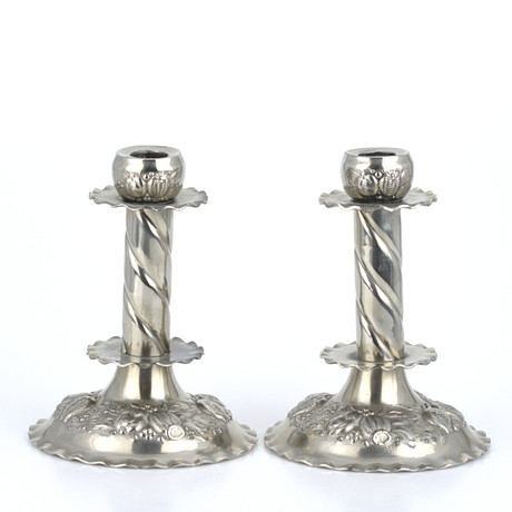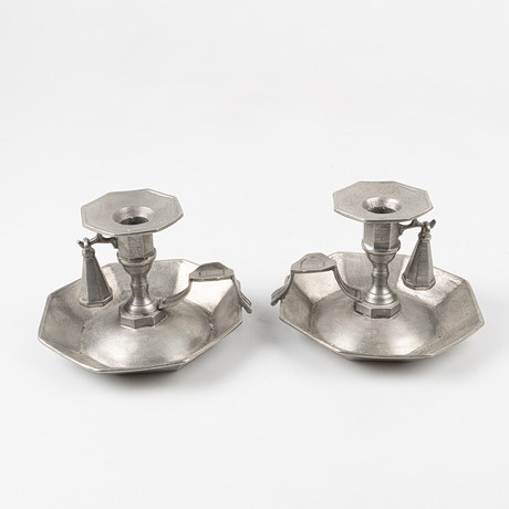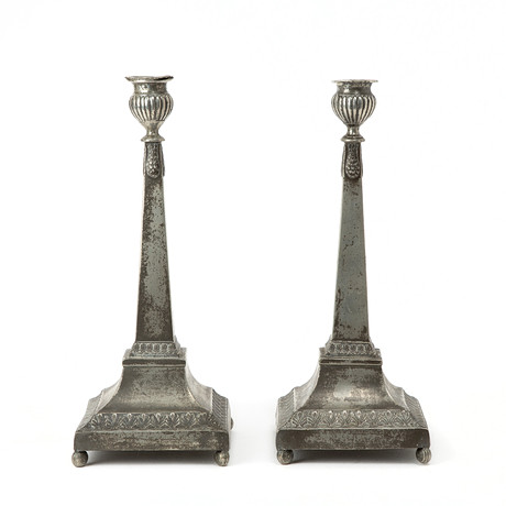 4376842. A pair of Gustavian style pewter candlesticks, 1930s.