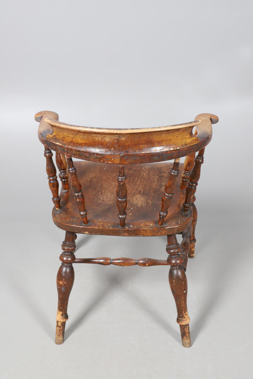 With turned spindles, united by two turned stretchers. Height 79cm. seat height 44cm.