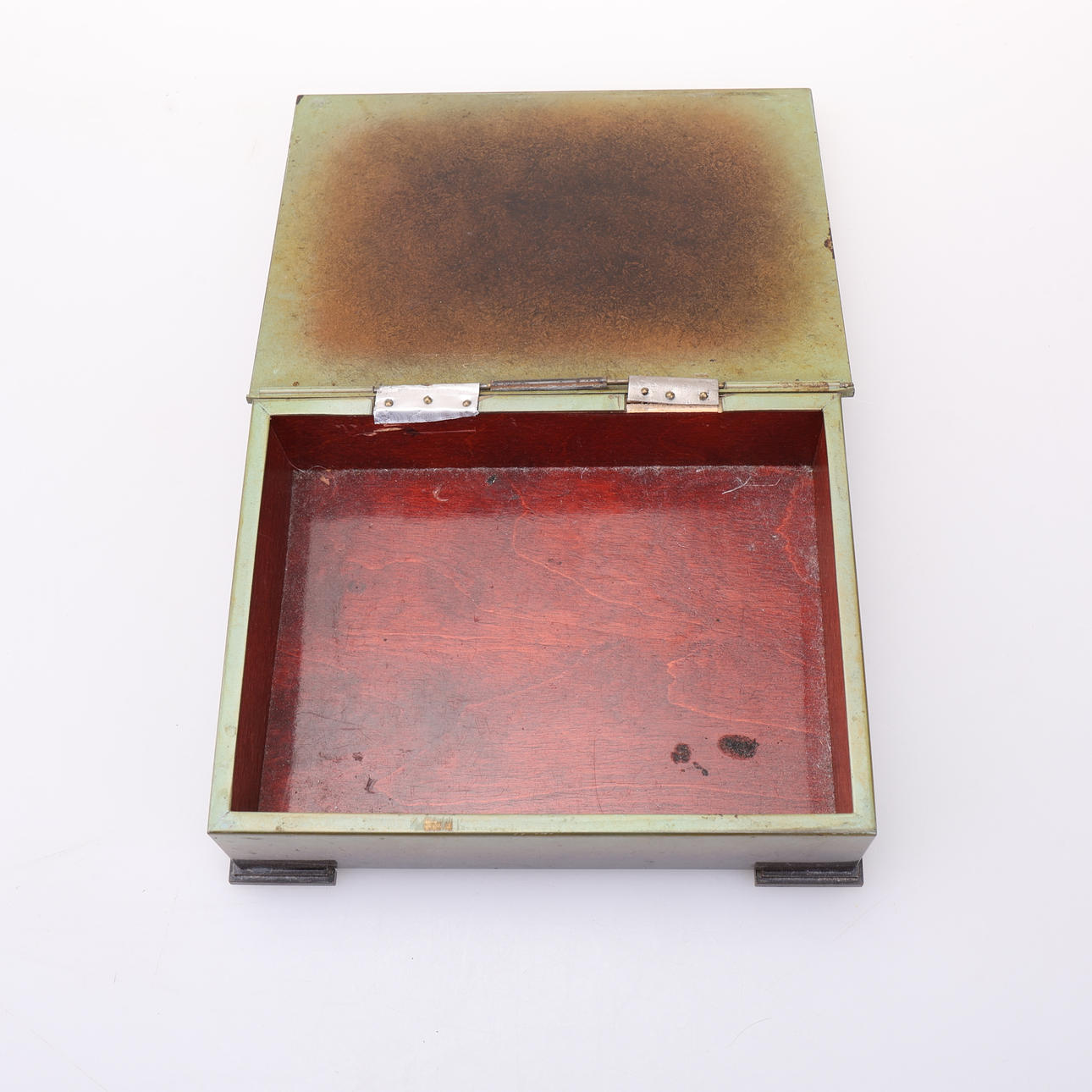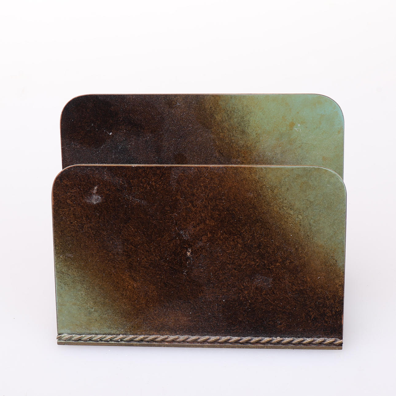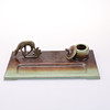 Patinated bronze. Ink stand, approx. 14x29 cm. Vase ca20 cm. Cigarette box, approx. 4x17x13 cm. Letter stand, approx 5x8x12 cm.