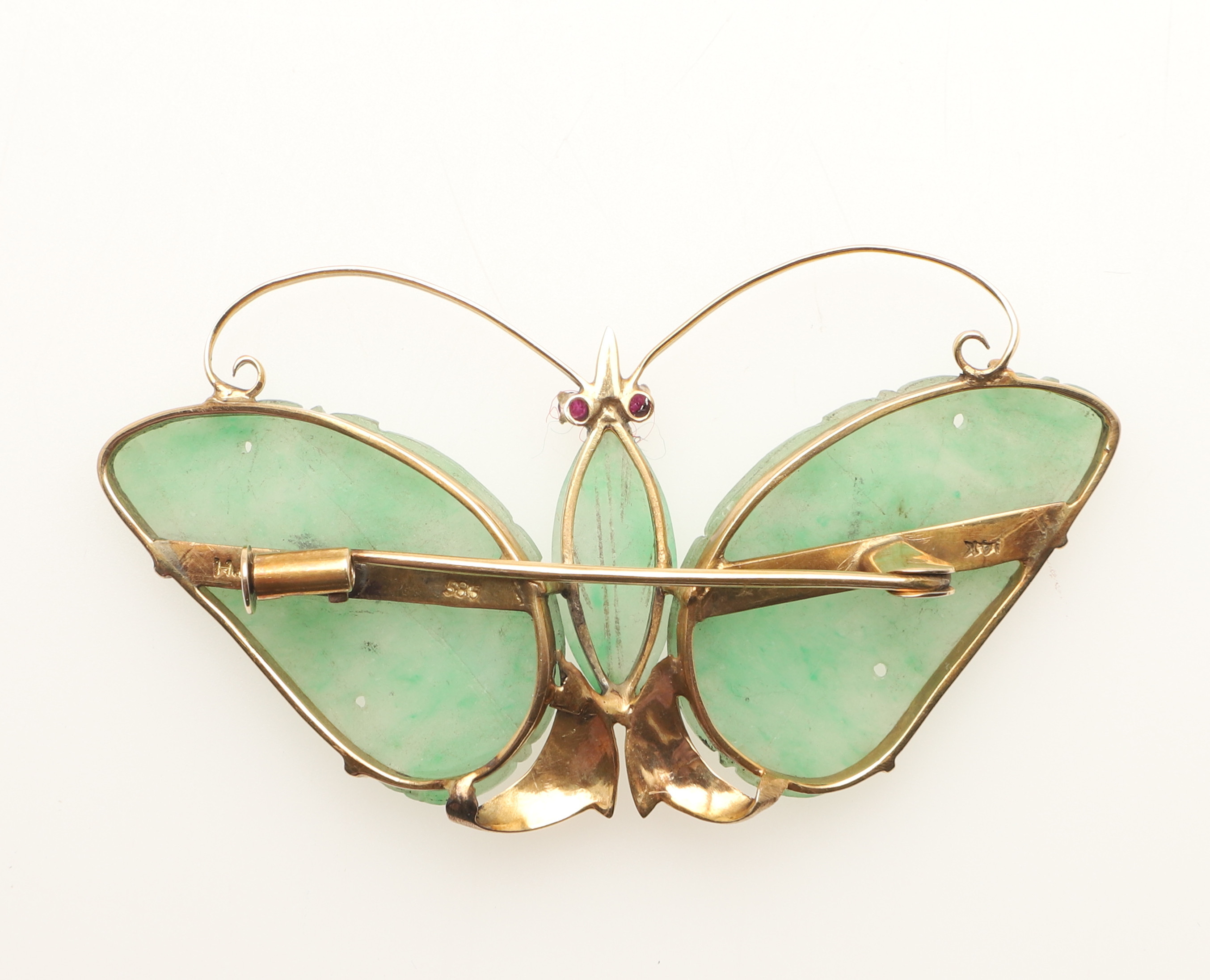 4377598. A JADE AND RUBY BUTTERFLY BROOCH.
