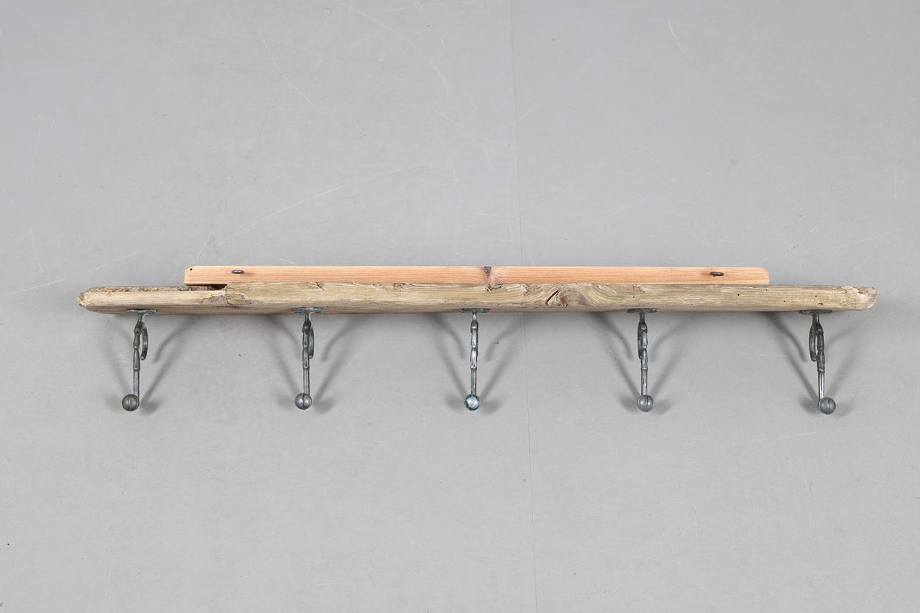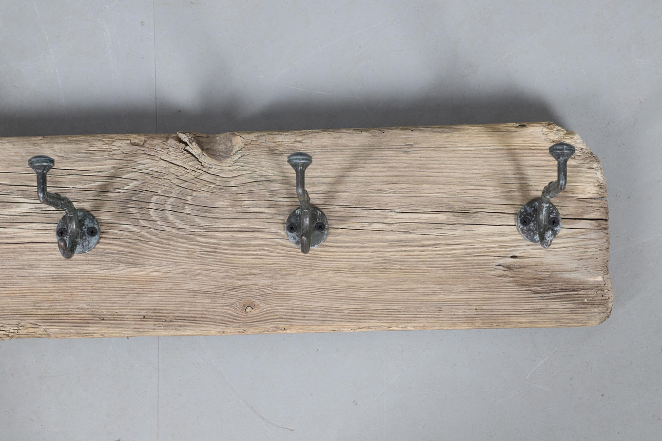 A RECLAIMED PINE COAT RACK.