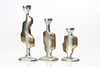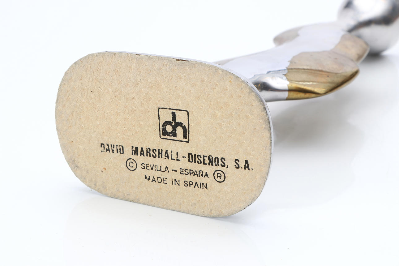 DAVID MARSHALL-DISEÑOS. CANDLESTICKS, THREE PCS. Aluminum and brass. Spain, second half of the 20th century. Marked underneath.