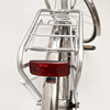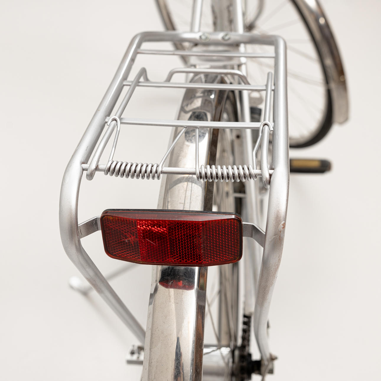 Hand and foot brake, package holder, chain guard and metal mudguards, block lock with key.