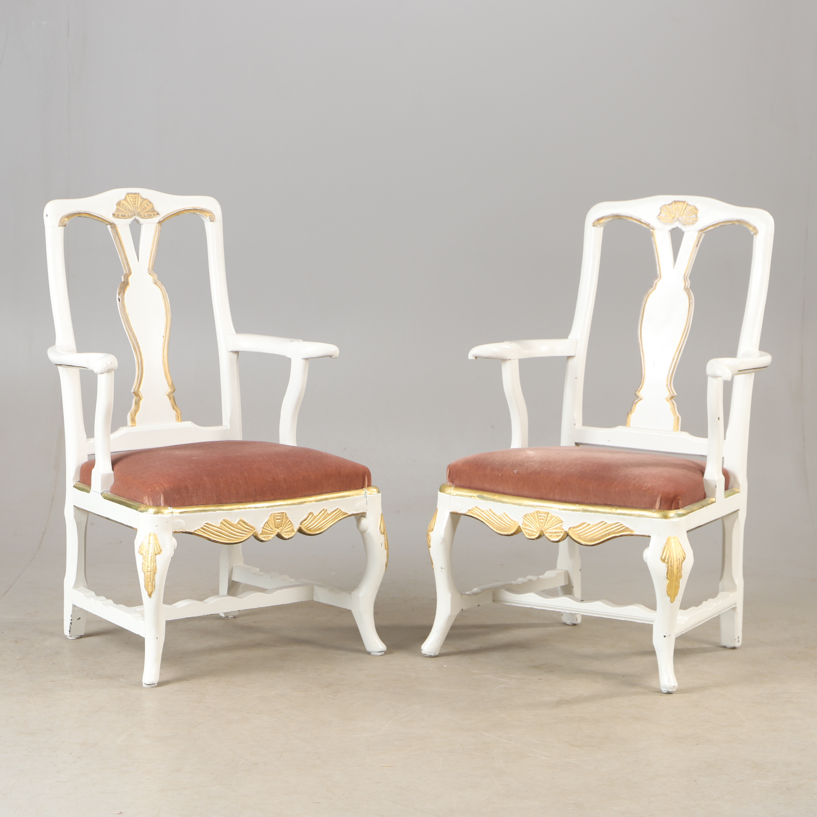 4377889. ARMCHAIRS, 1 pair, white painted, rococo.