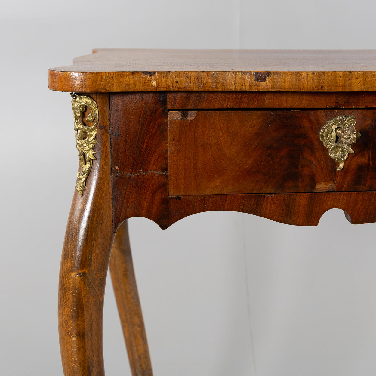 mahogany veneered with box in sarg, brass fittings. Height approx. 70 cm, 52 x 43 cm.