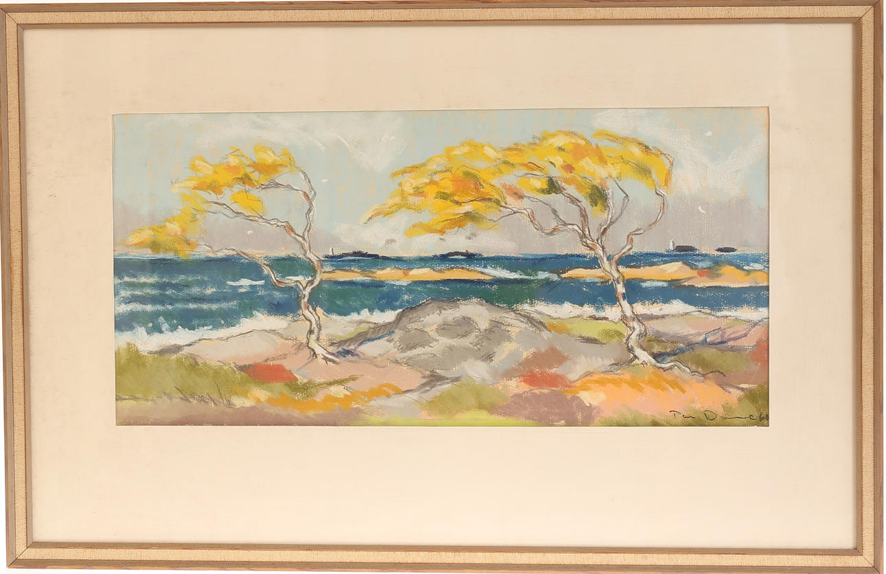 According to verso, provenance Lönö, Sara Leander Frame approx. 38 x 59 cm. Picture approx. 22 x 44 cm.