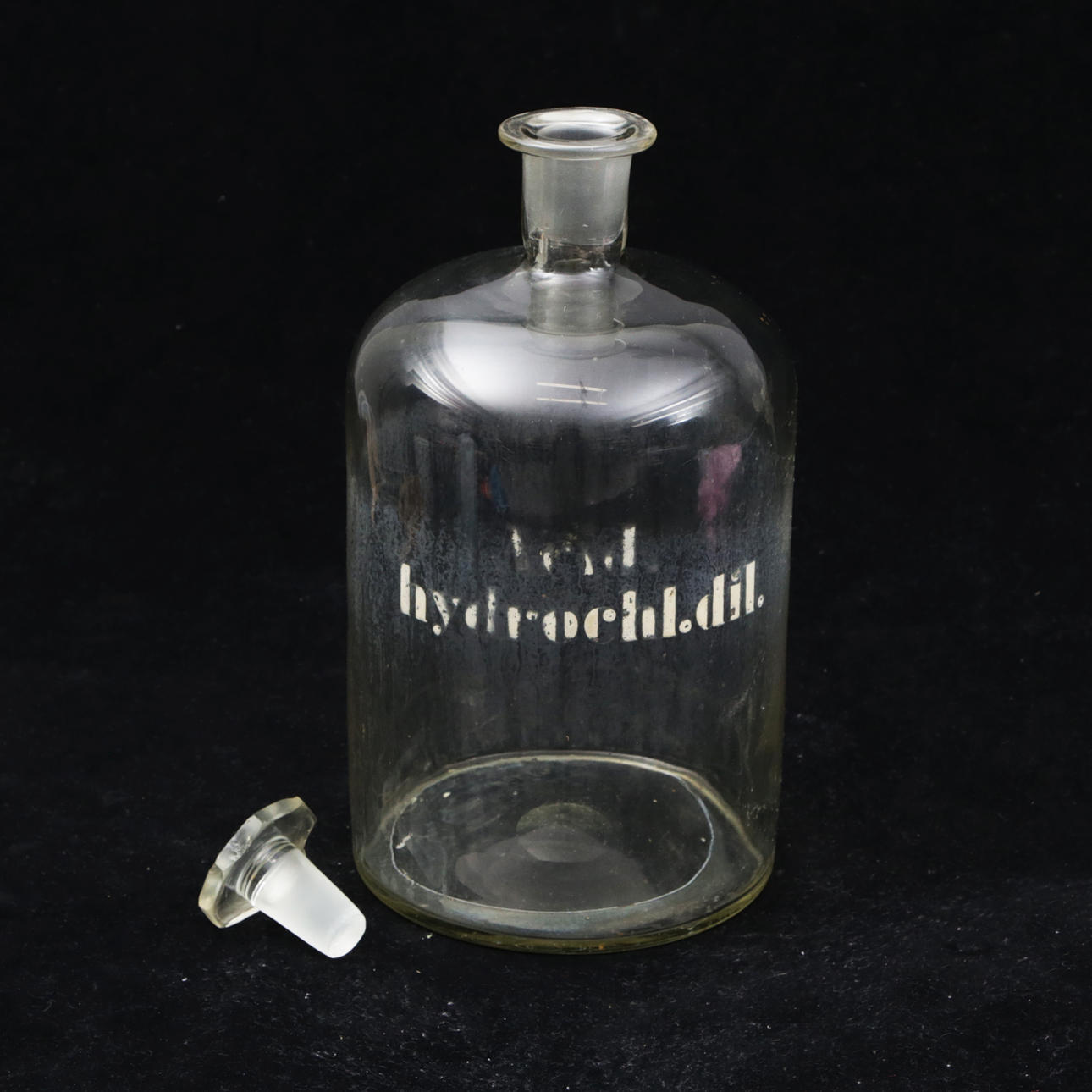 4378259. PHARMACY BOTTLE, with stopper, Latin text.