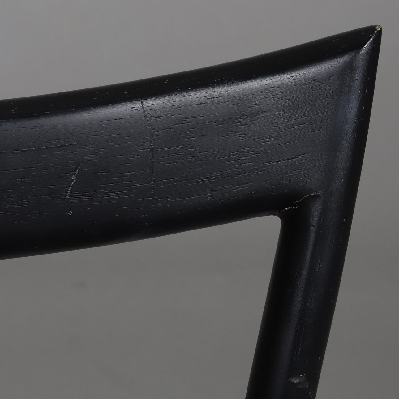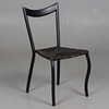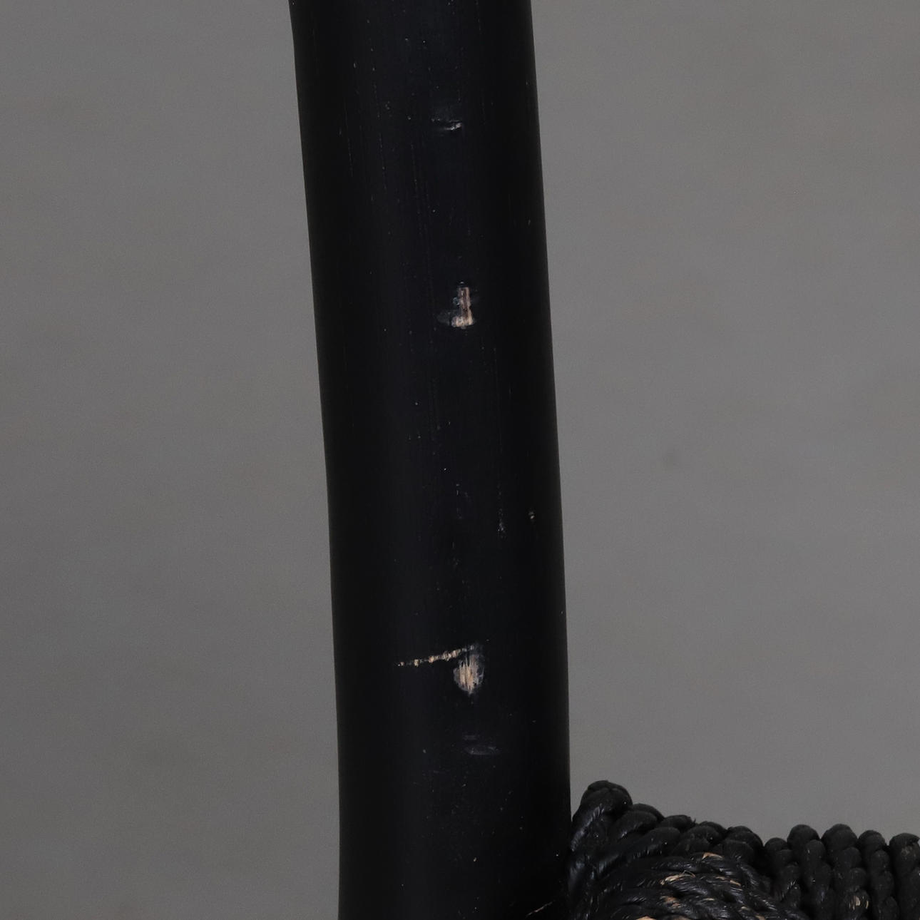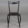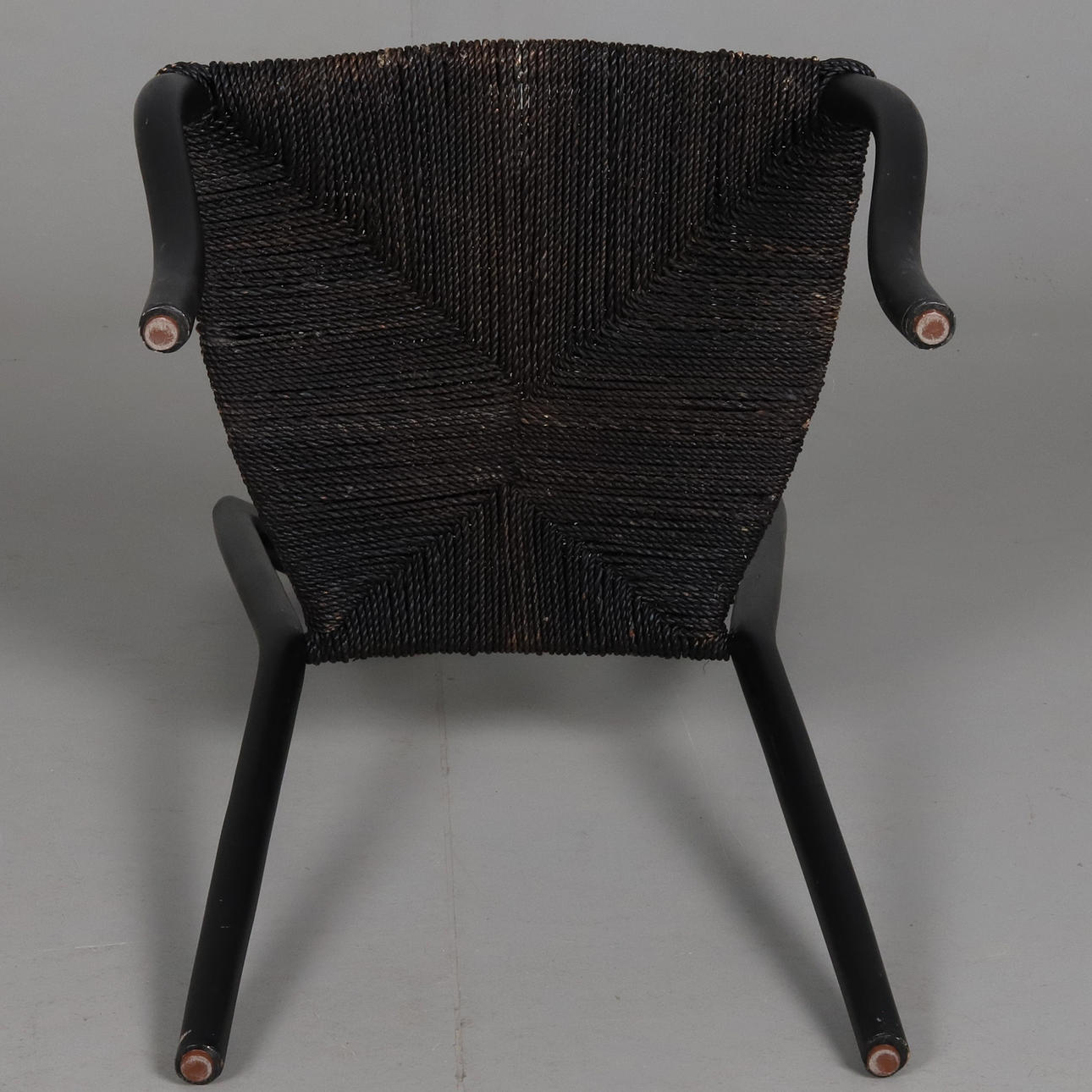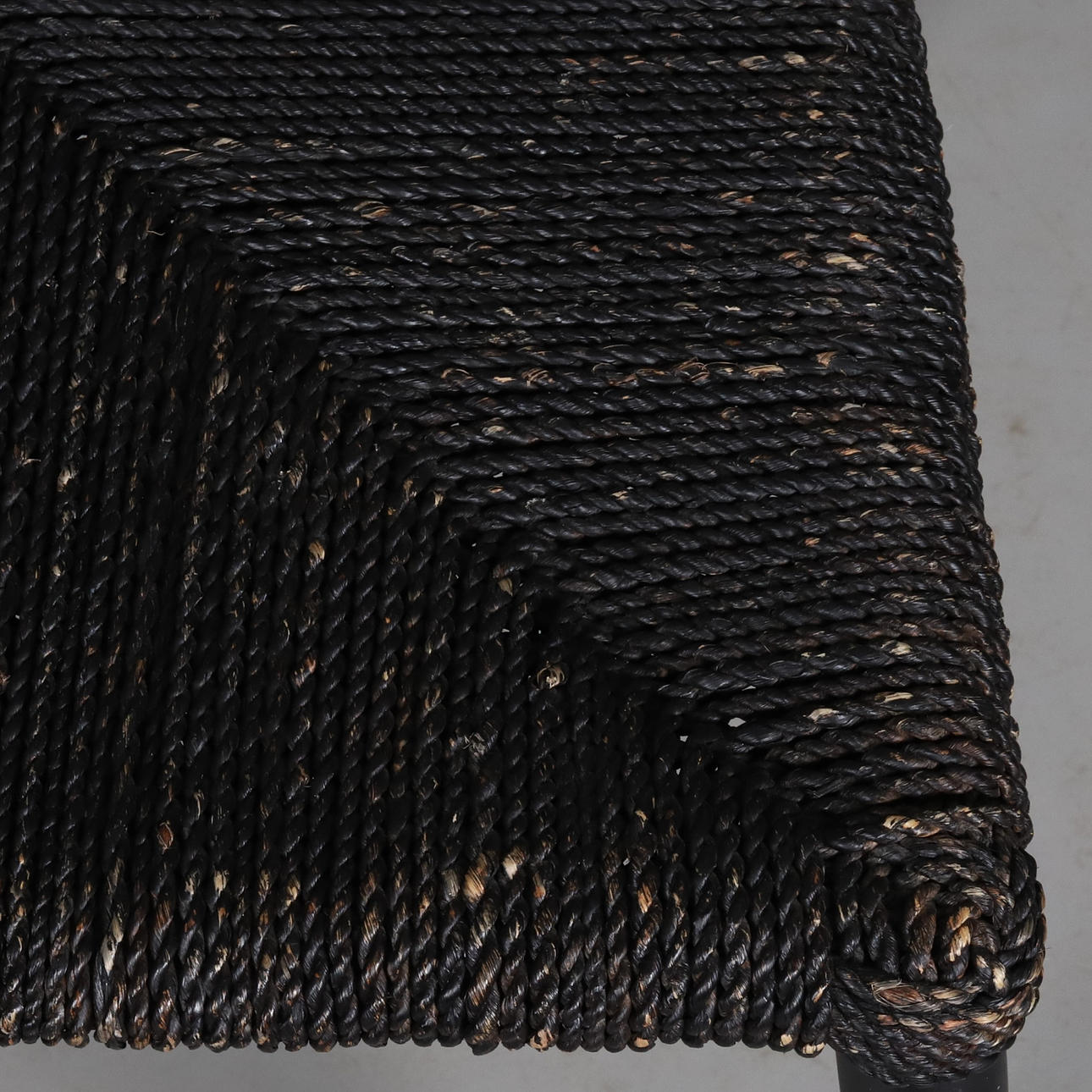 Dining chair with matt black lacquered frame and woven seat with seaweed rope.