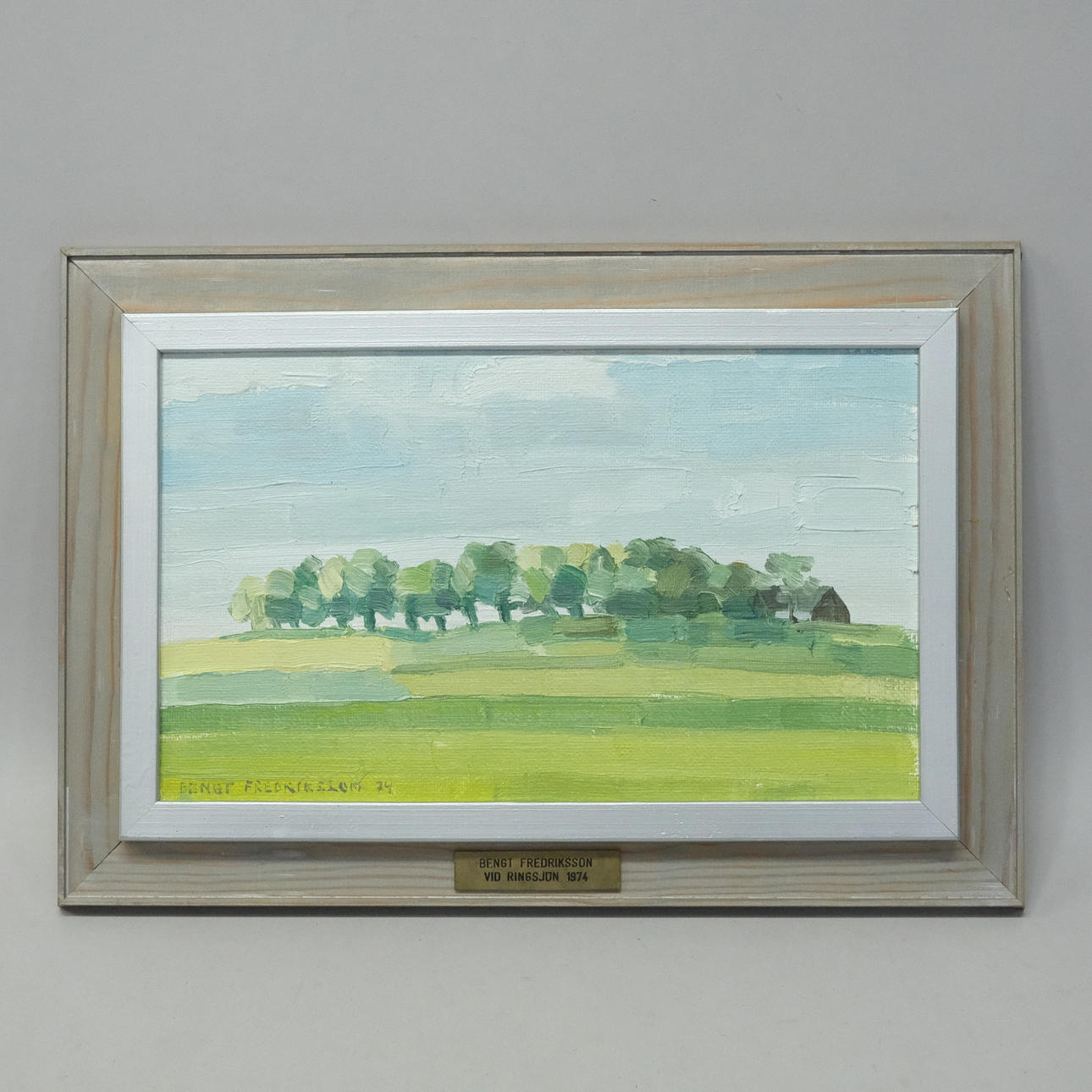 Signed and dated 1974, oil on panel, titled on plaque on frame, 16x17 cm, frame 24.5x35 cm.