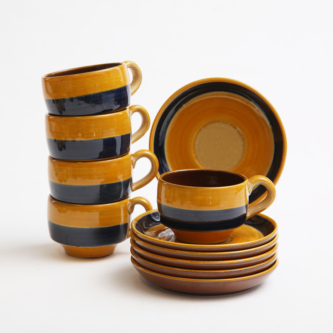 5 cups with 6 barrels, the height of the cup about 6.5 cm, the diameter of the saucer about 15.5 cm