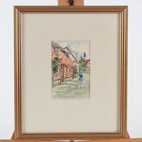 4379357. ERIK TRYGGELIN. “Little Fiskarporten” motif from Visby, oil on canvas, signed and dated 1933.