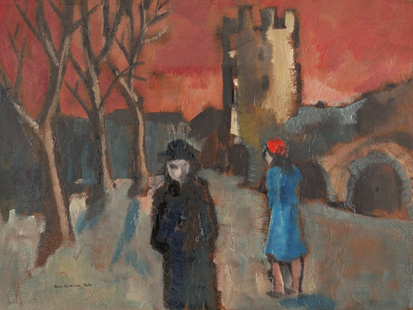 ERIK  TRYGGELIN. “Little Fiskarporten” motif from Visby, oil on canvas, signed and dated 1933.