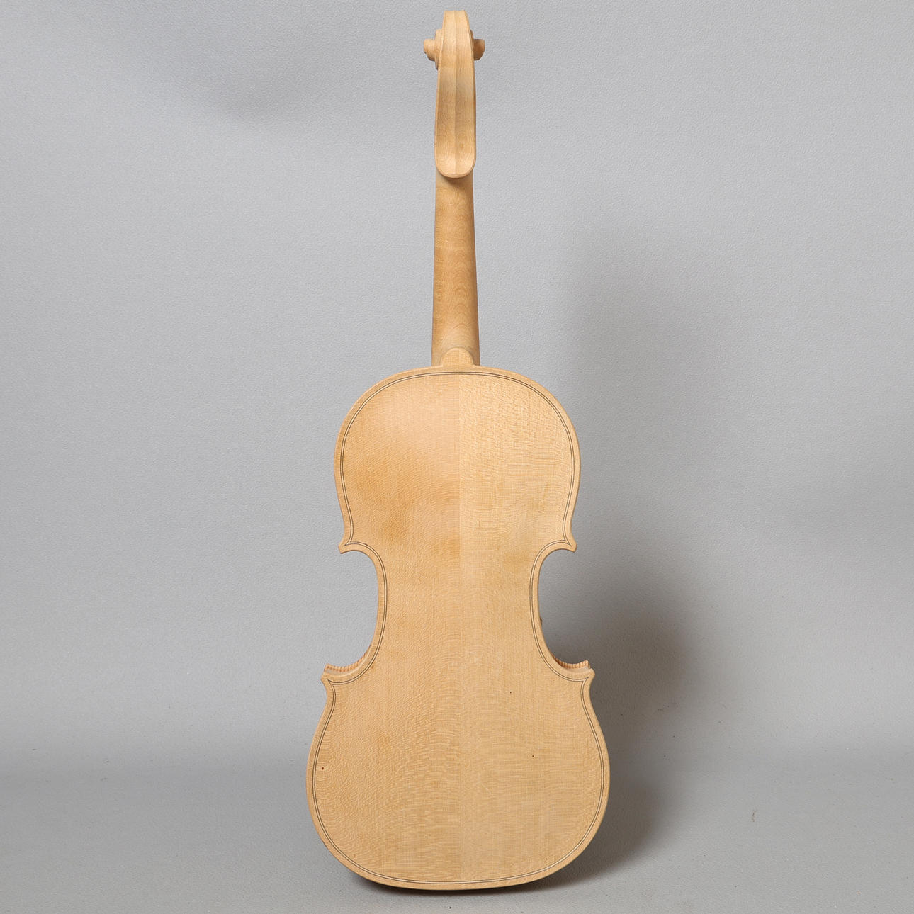 The unlabelled handmade and unvarnished 1/4 violin, back length 27.5cm, total length 46.5cm.