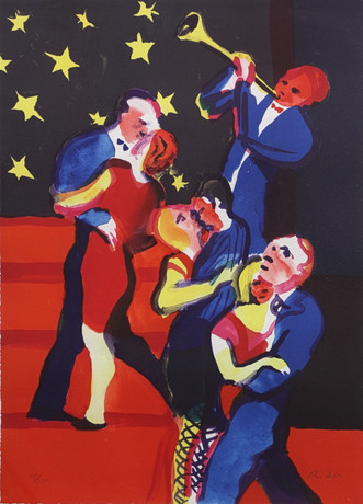 4379526. ERIK LARSEN. Figure scene, mixed media, signed.