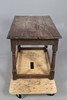 with single drawer, upon turned and block supports united by stretchers, 66cm high x 99cm wide x 62cm deep.