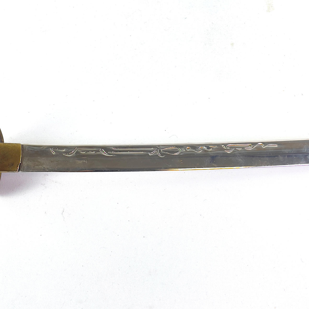 Cut dragon decoration on hand grip, decorated blade, length approx. 70 cm, blade length approx. 47,5 cm, tub length approx. 51 cm.