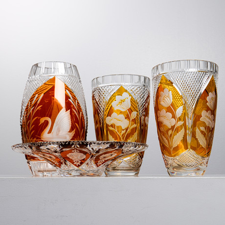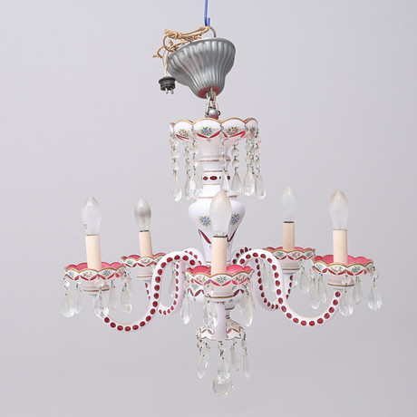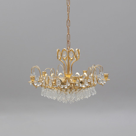 4380167. CEILING PLAFOND with prisms in Bohemian Crystal, 20th century, height approx. 40 cm.