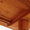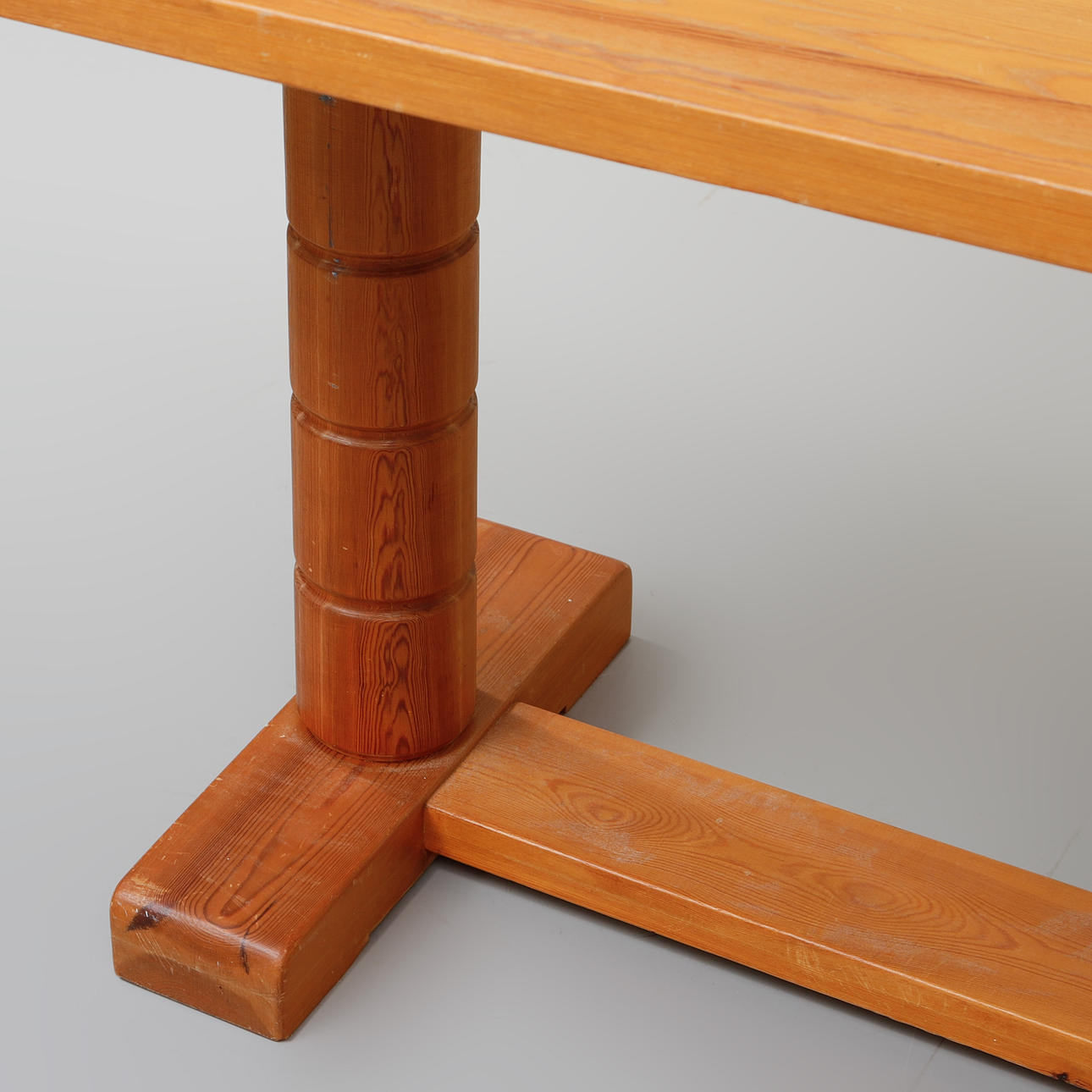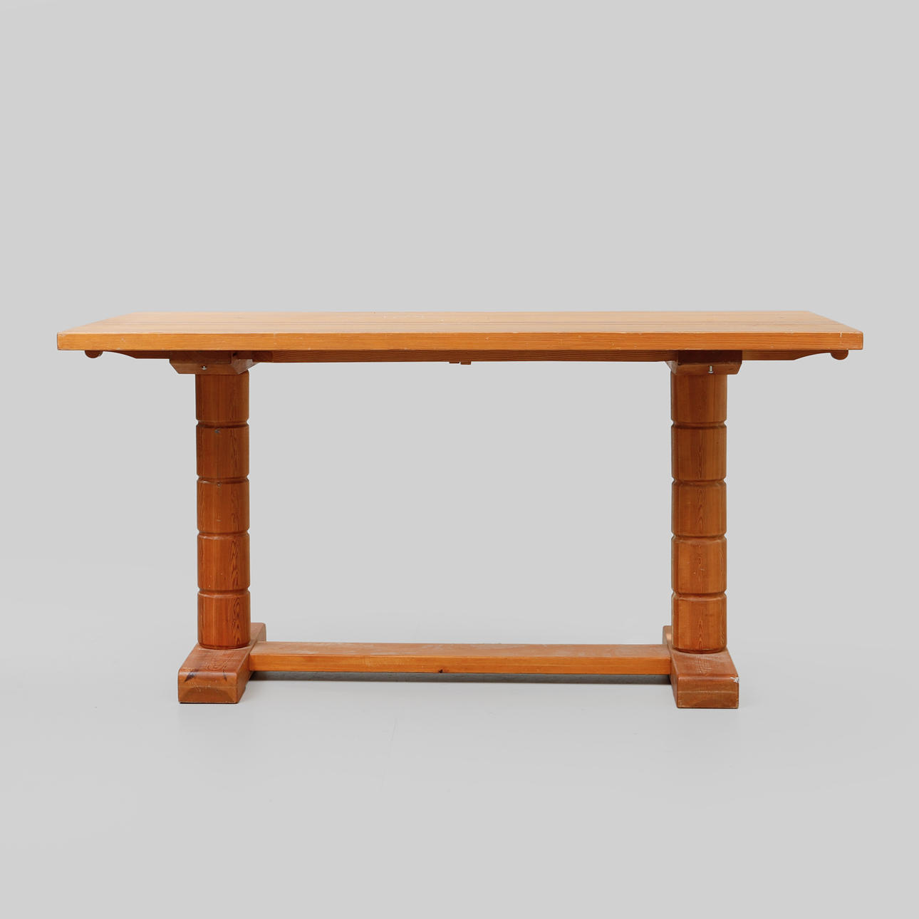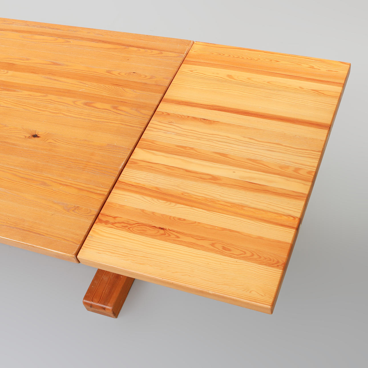 Pine, length 150 cm + 2 insert boards of 45 cm, width 75 cm, height 75 cm.