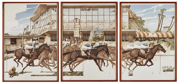 HARRY MOBERG triptych, oil on canvas, signed on the back of the frame.