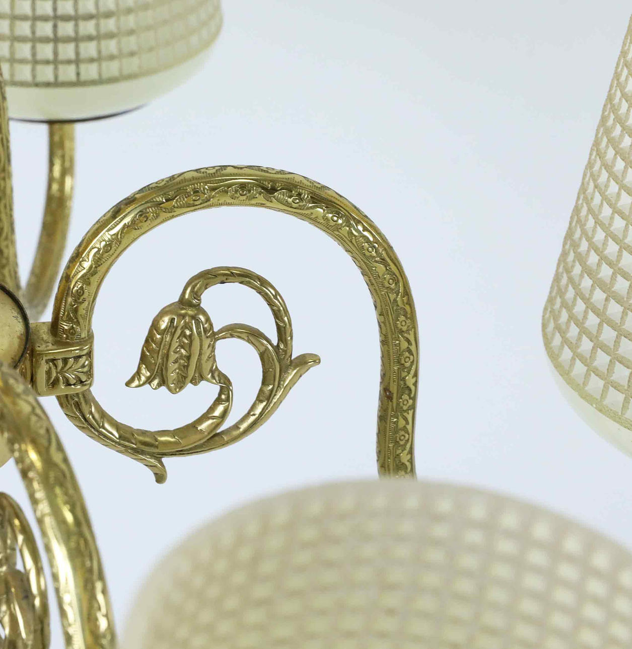 Brass, Glass. Height to ceiling cup 60 cm Width approx. 54 cm.
