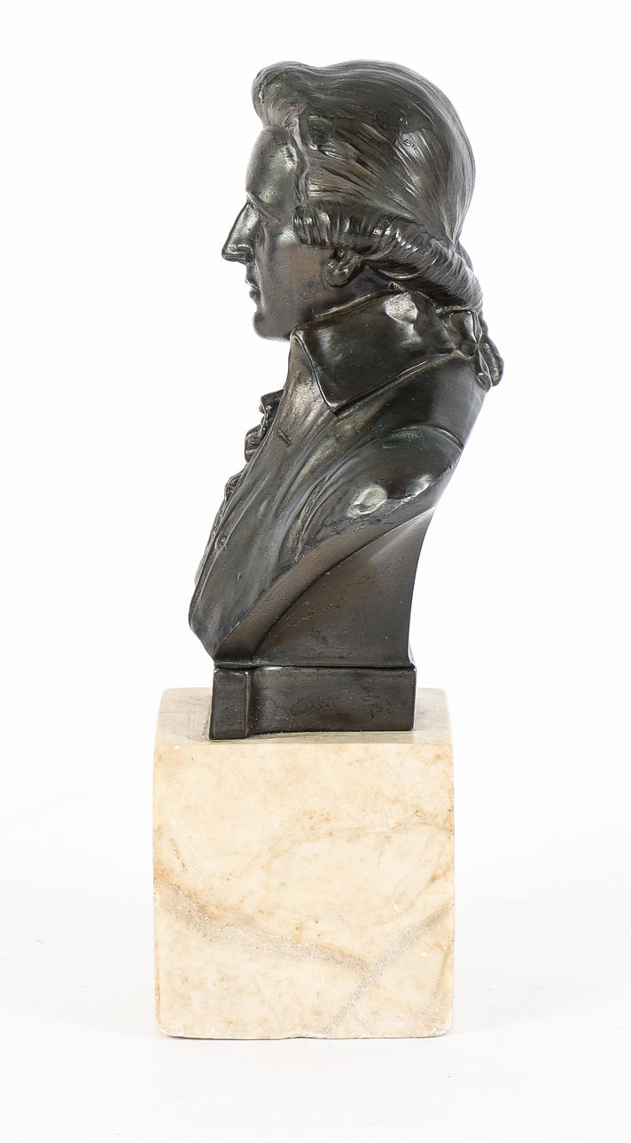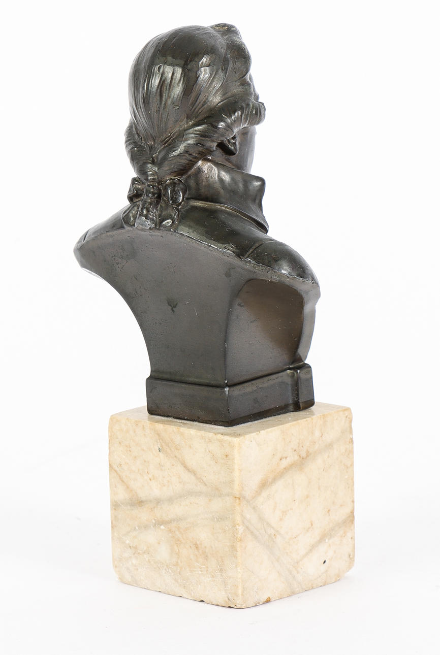 BUST metal on marble plinth, Mozart.