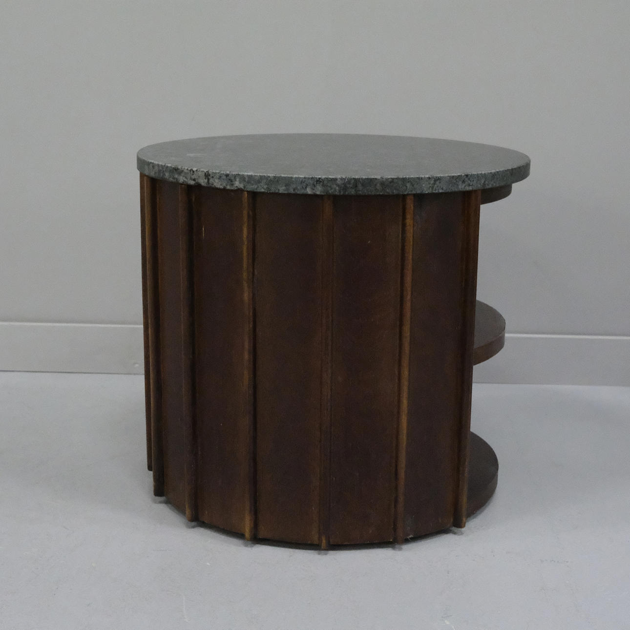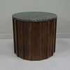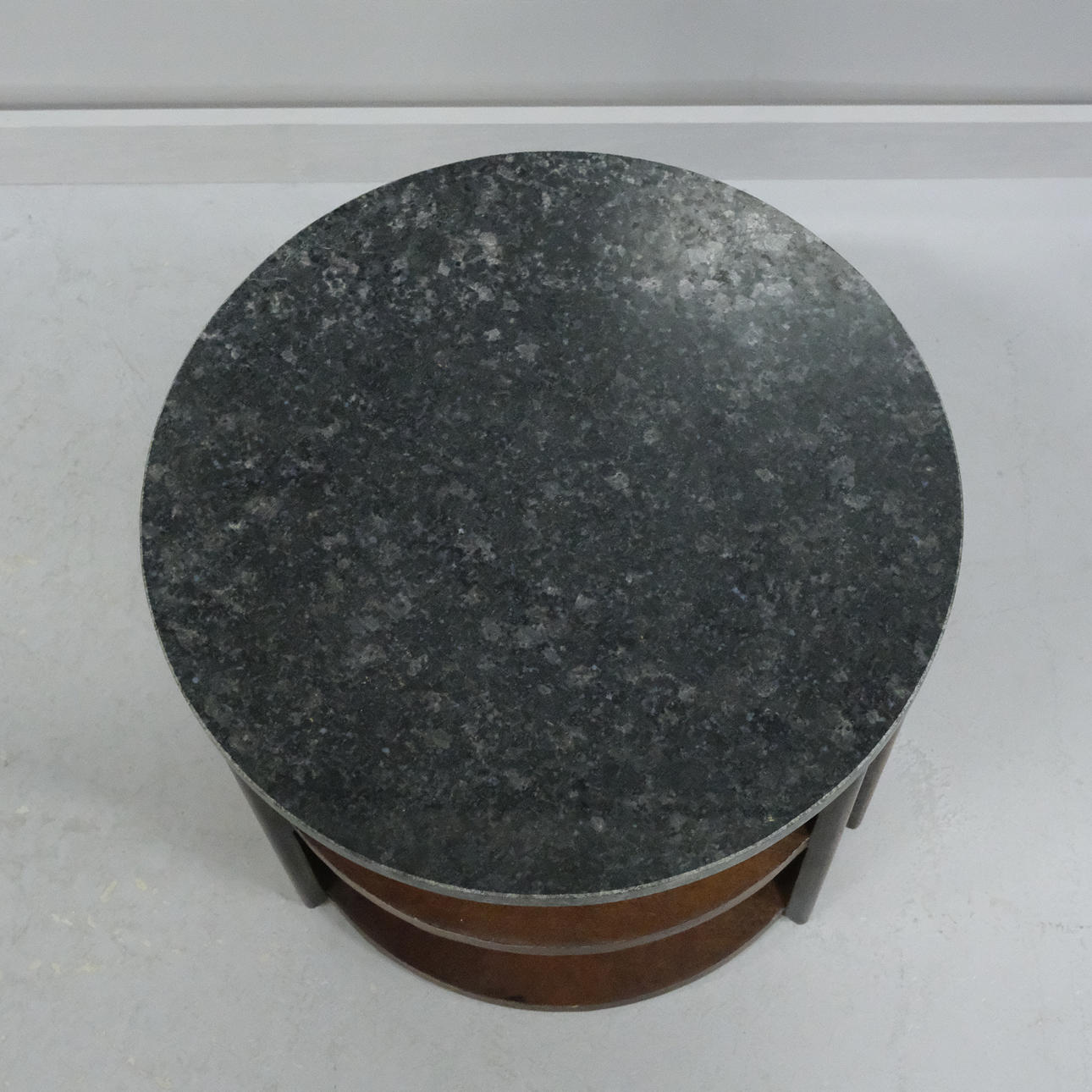 Mango wood, marble top, height 36 cm, diameter 40 cm, two shelves.