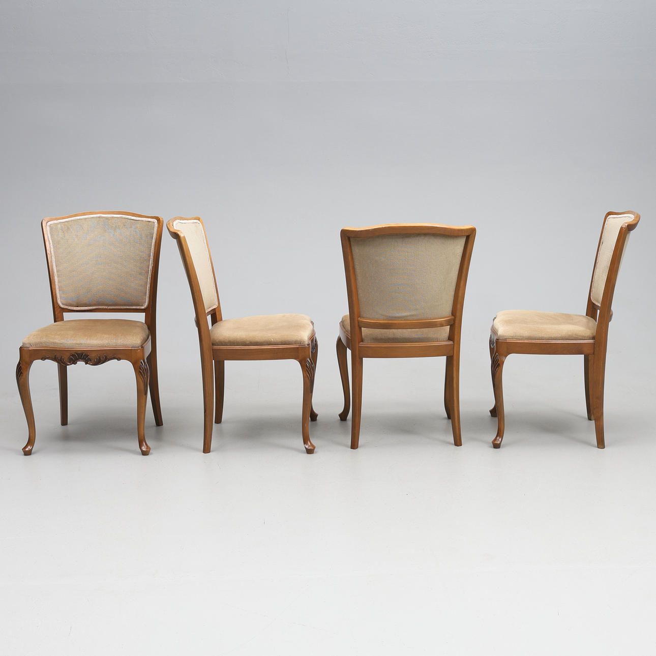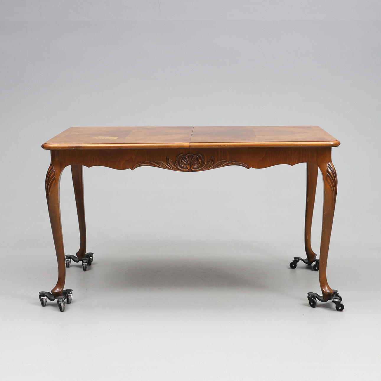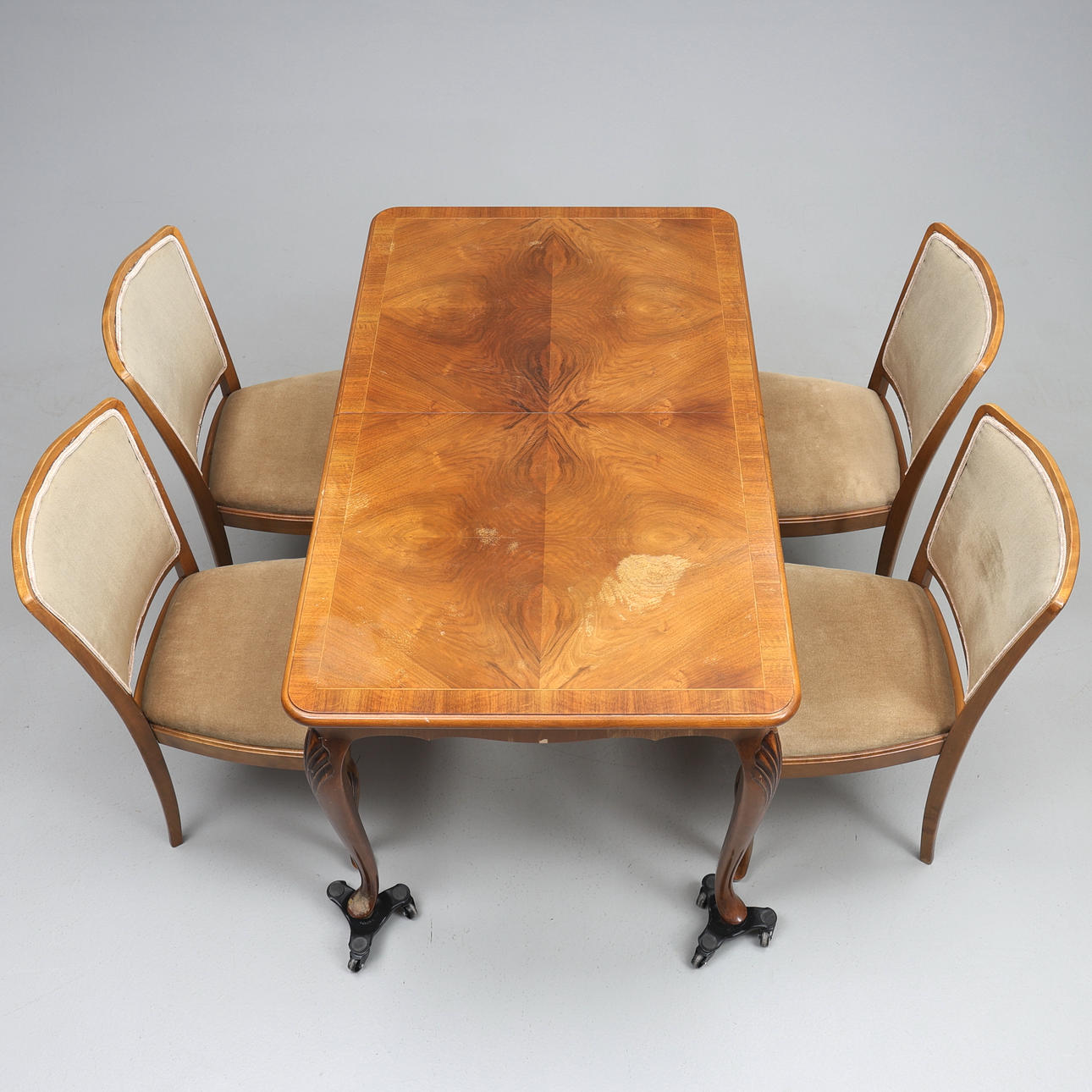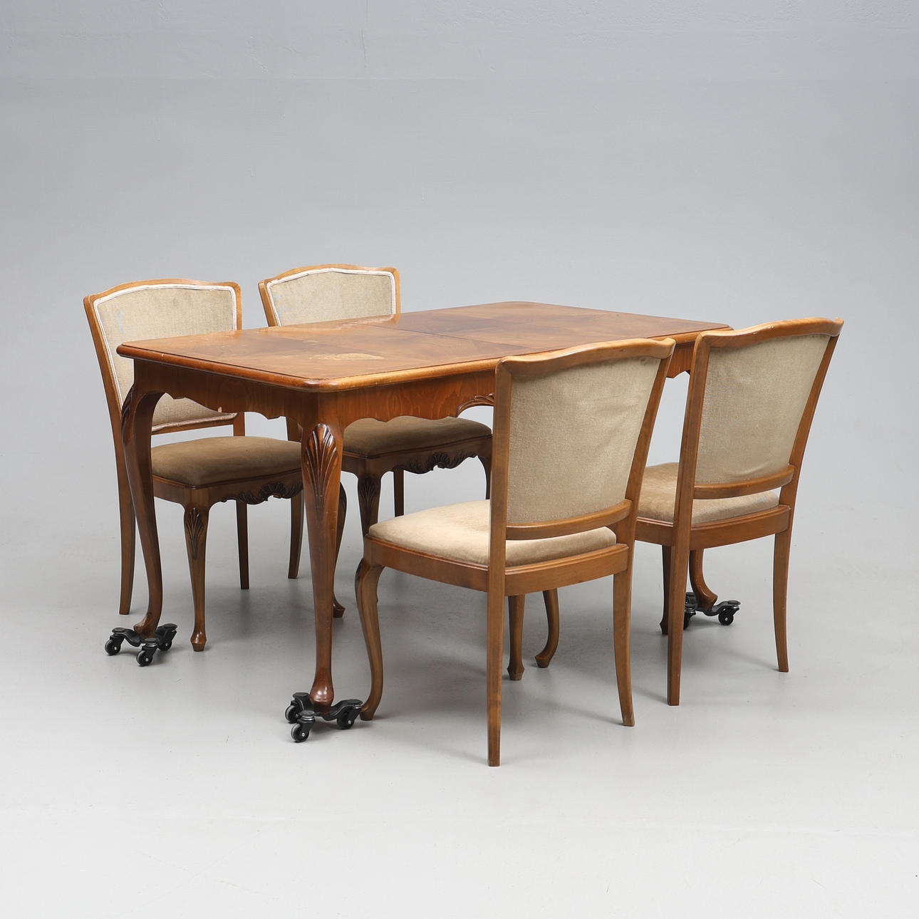 4381206. DINING TABLE WITH 4 CHAIRS, Rococo style, inserts, lacquered wood. circa 1970s.